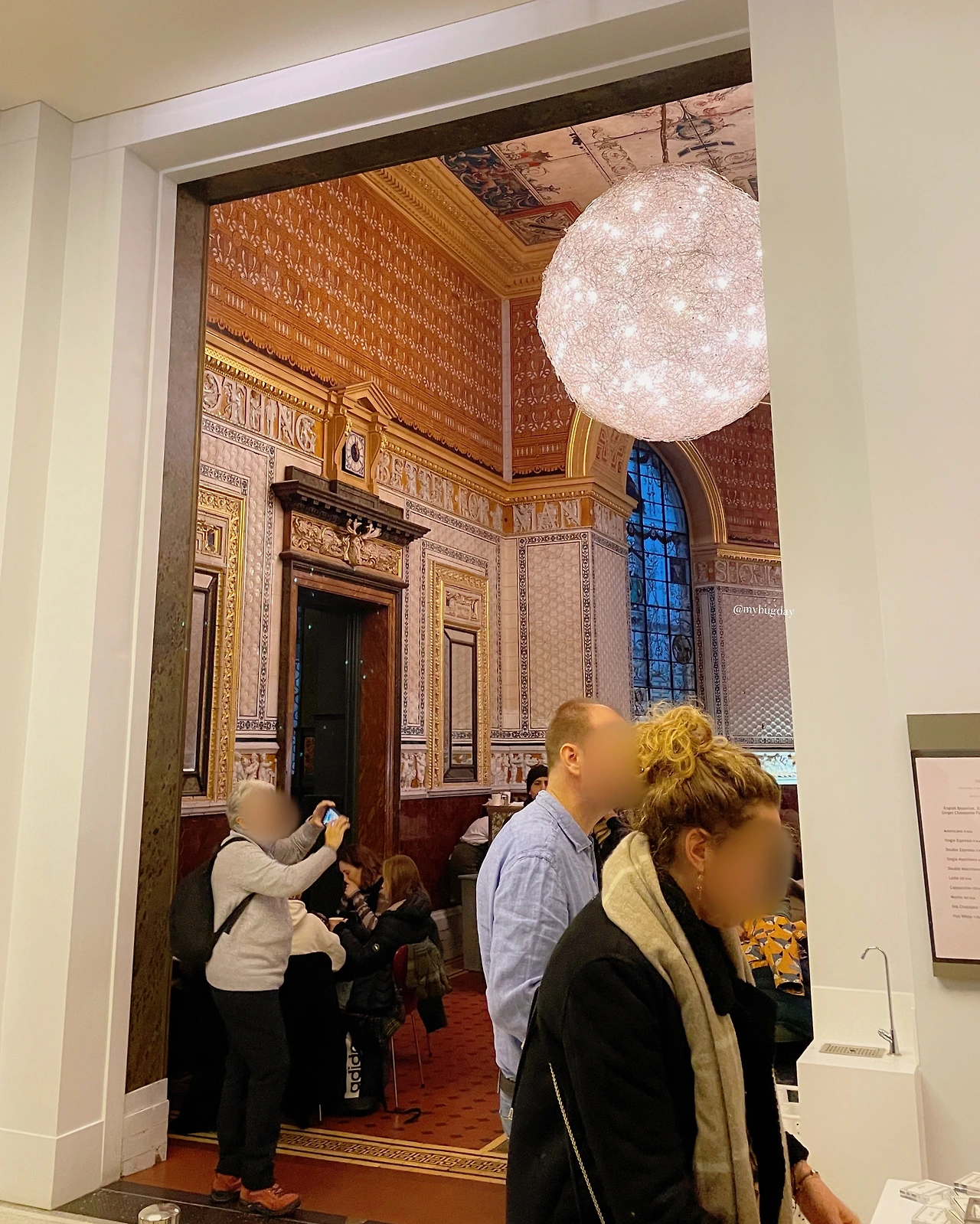 런던에는 훌륭한 컬렉션을 자랑하는 미술관들이 많아서 나와 같은 미술 덕후 여행자에게는 참 매력적인 도시이다. 한정된 짧은 여행 기간 동안 방문할 미술관들을 열심히 고심하여 추려냈는데, 오늘은 그중 V&A Museum (Victoria and Albert Museum)을 가는 날이다. 사실 V&A 박물관은 전시 관람보다는 박물관 안에 있는 ‘The V&A Cafe’에 가보고 싶어서 방문하는, 염불보다는 잿밥에의 지대한 관심으로 택한 곳이다. 언급한 V&A 카페는 빅토리아풍 인테리어와 맛있는 스콘으로 유명한 곳인데, 더구나 박물관 안에 위치해 있으므로 예술품도 관람하고 티타임도 즐길 수 있다는 점에서 더욱더 사람들을 매료시키지 않았나 생각이 든다.