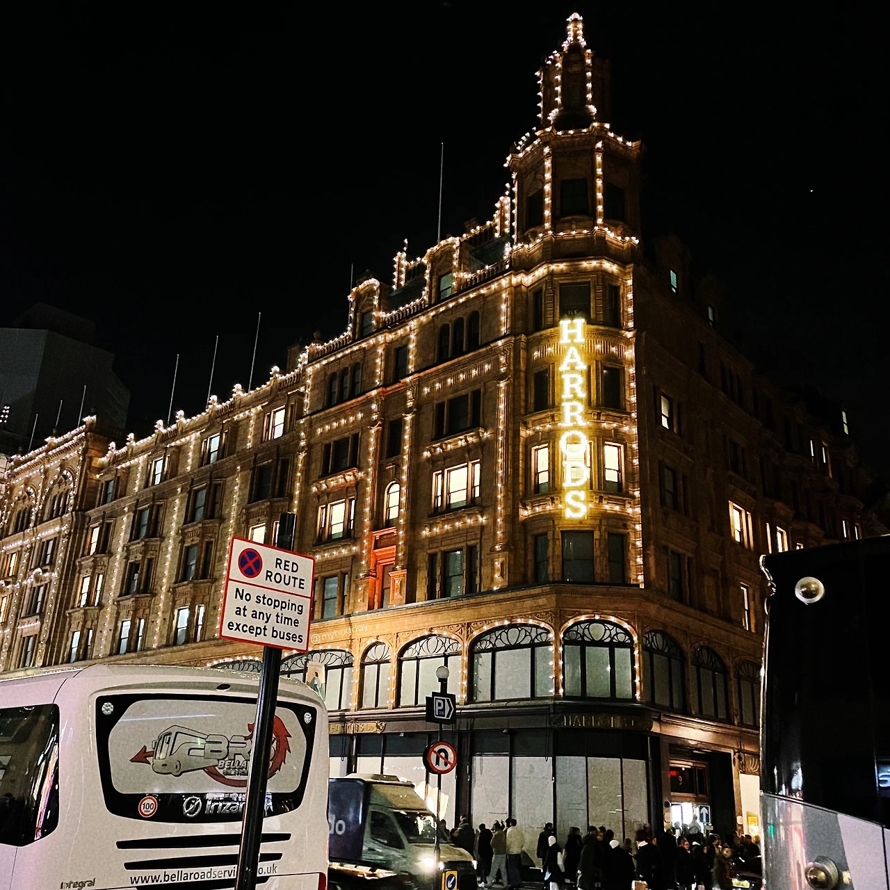 빅토리아 앤 알버트 뮤지엄을 빠져나와 나는 엄마의 심부름을 이행하기 위해 박물관 근처의 Harrods (해로즈) 백화점으로 향했다. 런던에 간 김에 예쁜 지갑을 하나 사다 달라고 요청하셨기 때문이다. 런던의 Knightsbridge 지역에 위치한 해로즈백화점은 세계적으로 유명하며 또한 큰 규모를 자랑하는 백화점이기에 자칭타칭 향수 마니아인 나는 한국에 오프라인 매장이 없는 하우스의 향수 혹은 한국에서 구하기 힘든 라인의 향수들을 이곳에서 건질 수 있을지도 모른다는 기대감으로 들뜬 채 백화점으로 향했다. 백화점 외벽에 세로로 수 놓인 선명한 노란빛의 일곱 글자 ‘H A R R O D S’는 멀리서도 찬란한 광채를 뿜어내며 거리의 수많은 건물들 사이에서 존재감을 공고히 하였고, 그 일곱 글자 주변으로 건물 외벽 전체를 덮은 노란 조명 장식은 안 그래도 온갖 건물들과 그 조명들로 낮처럼 환한 그 밤거리 위에서 절대 지지 않겠다는 듯 조용히, 하지만 요란하게, 거리 일대를 낮처럼 만드는 데 일조하였다.