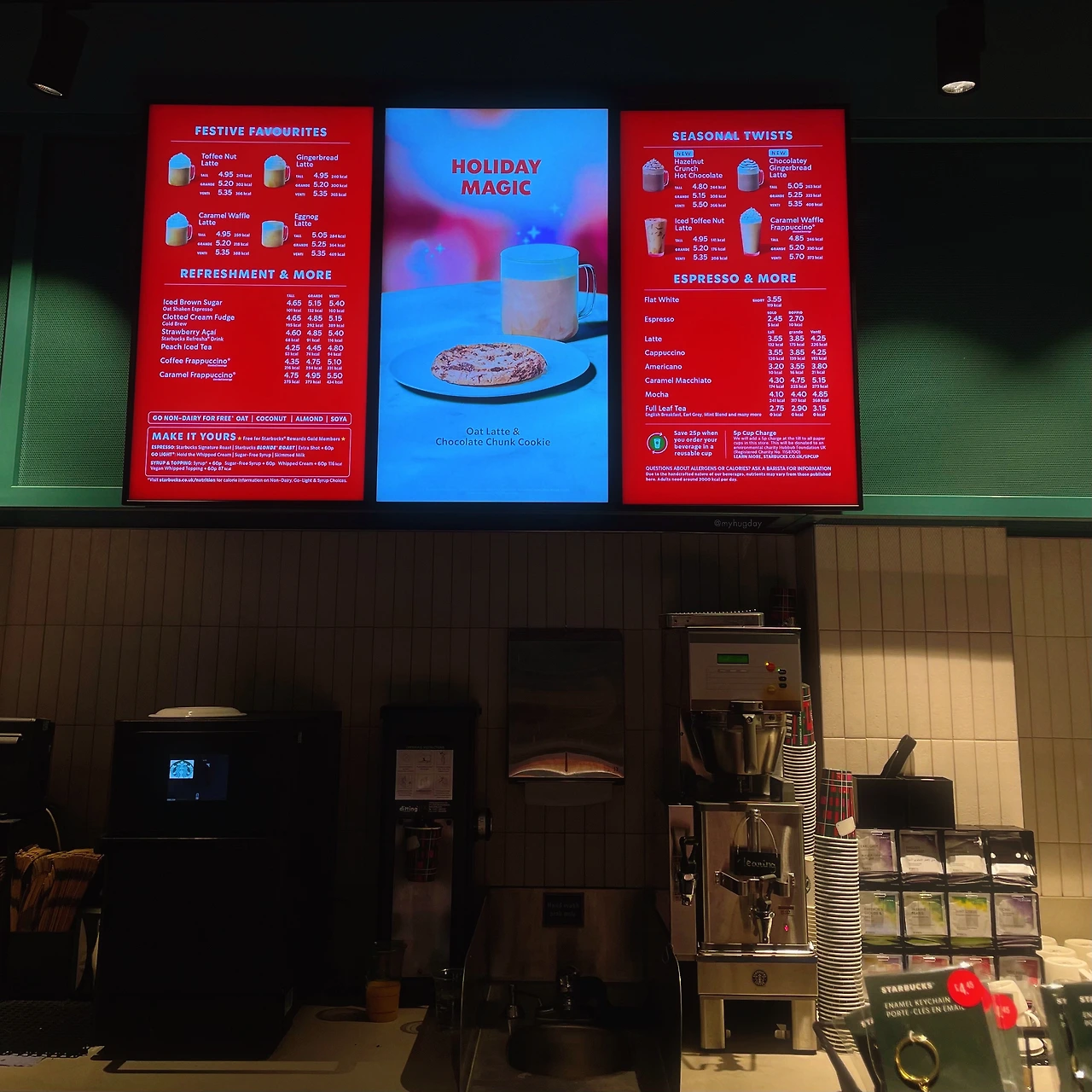 왜 진작 소호에 와보지 않았을까 싶을 정도로 소호의 밤은 매우 활기차고 볼거리가 많았다. 하지만 그런 소호에서 조차도, 역시나 술을 마실 생각이 없는 내게는 엉덩이 붙이고 몸을 녹일 곳을 찾기 힘들었다. 게다가 앞서 말했듯 밤이 되면 집에 있어야 하는 성향이 몸 깊숙이 밴 사람이라, 특별히 무언가 하지 않더라도 이 시간에 밖에 나돌아 다니고 있는 것만으로도 몹시 피로했다. 나는 구글맵을 뒤지고 또 뒤져 가까스로 늦은 시간까지 영업하는 커피숍을 찾아냈다. 그곳은 바로 스타벅스. 역시 세계 어디에서든 만만한 게 스타벅스인가 싶다. 기왕 런던 스타벅스에 방문했으니 에그노그라테를 주문했다. 에그노그 라테는 에그노그(Eggnog)라는 크리스마스 음료에서 영감을 받아 만들어진 메뉴로, 달걀과 우유를 기반으로 만든 베이스에 에스프레소와 향신료를 더한 달콤한 커피 음료이다. 아무래도 대중의 입맛을 충족시켜야 하기 때문인지 에그노그의 진한 맛은 그다지 느껴지지 않는, 거의 시나몬파우더를 얹은 바닐라라테에 가까운 맛이긴 했지만 몽글몽글 하얀 밀크폼 아래 놓인 달달한 우유는 따뜻하고 포근하여 지친 방랑자의 몸을 녹여주기에 충분했다.