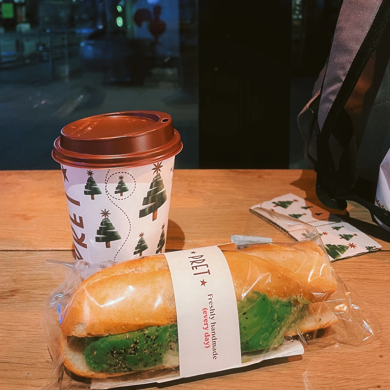 이른 비행 편 시간 때문에 선데이 로스트를 먹고 가지 못하는 것이 조금 아쉽다. 섭섭함을 달래기 위해 공항행 테임즈링크를 타기 전에 유스턴역 Pret a Manger에서 런던에서의 마지막 아침 식사를 즐기기로 했다. 주말에도 아침 일찍 영업을 시작하는 Pret에게 새삼 고맙다.