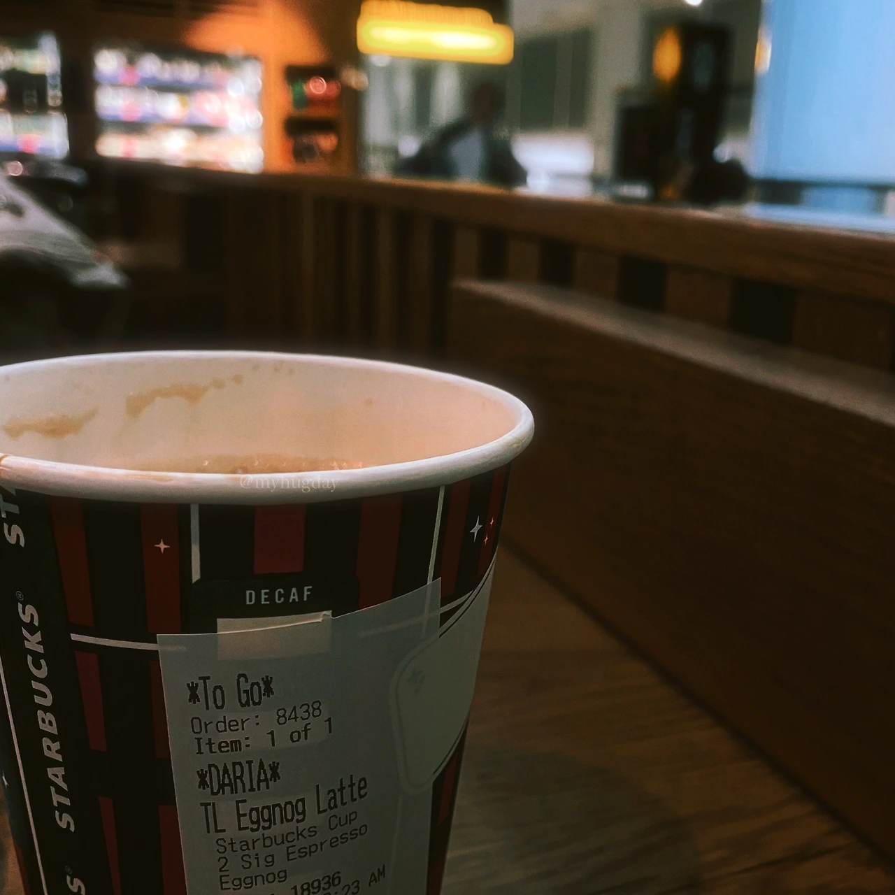 혹시나 변수가 생길 경우를 대비하여 여유 있게 나왔더니 탑승 시각까지 제법 시간이 많이 남았다. 마지막으로 면세점도 둘러보고, (또)스타벅스에서 마지막 에그노그라테도 한 잔 더 마시고, 더 이상은 할 게 없어 지겨움에 두 손 두 발 다 들쯤 드디어 탑승할 시간이 다 되었다.