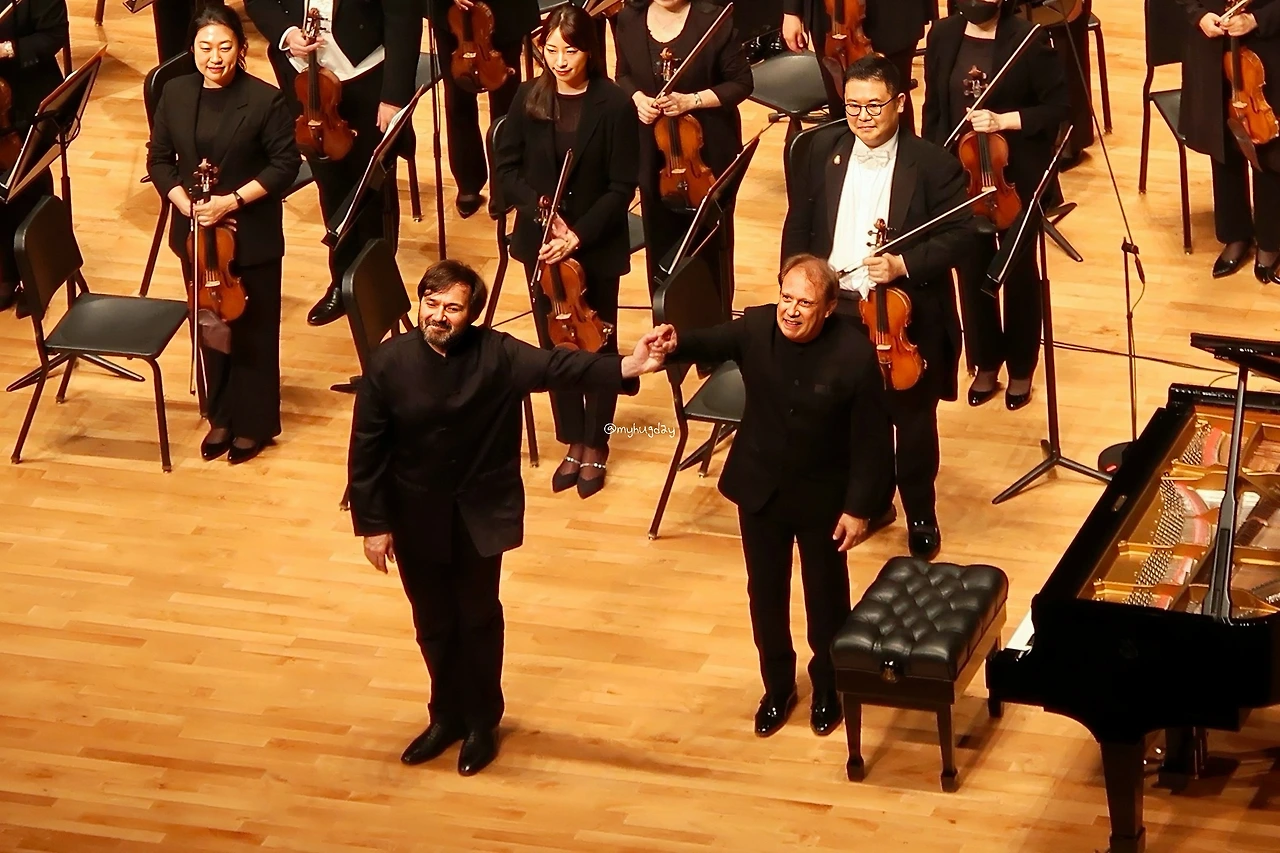 하지만 이게 웬걸. 서곡 삼아 연주된 스트라빈스키의 <불꽃놀이>부터 투박하고 날카로운 소리를 들려주며 은근슬쩍 당황케 하더니, 1부의 본곡과도 같은 라흐마니노프 피아노협주곡 2번 차례에서 기어코 아연실색하는 지경에까지 이르도록 하였다. 국립심포니와 호흡을 맞춘 피아니스트 알렉산더 코르산티아(Alexander Korsantia)의 피아노 연주는 팀 게임 도중 혼자 흥분하여 질주하는 한 명의 팀원 같았다. 피아노와 오케스트라 간의 합이 안정적이지 않은 것은 물론이요, 피아니스트는 라흐마니노프 피아노협주곡 2번 특유의 섬세하고 애절한 감성은 뒤로 한 채 거의 피아노를 잡아먹을 듯, 아니 사실은 때려 부술 듯이, “아저씨 피아노 되게 잘 치지?”라고 보여주고 싶어 흥분한 것처럼 무아지경에 빠져 연주하였다. 차라리 오케스트라와 합이라도 잘 맞았더라면 나름의 색다른 라흐마니노프 피아노협주곡 2번이 되었을지도 모르겠다. 하지만 결과적으로 그런 일은 일어나지 않았고 나는 1부 내내 이 혼란스러운 음악에 휩싸여 라흐마니노프 피아노협주곡 연주의 신박한 새 역사가 쓰이는 현장을 목도해야만 했다.