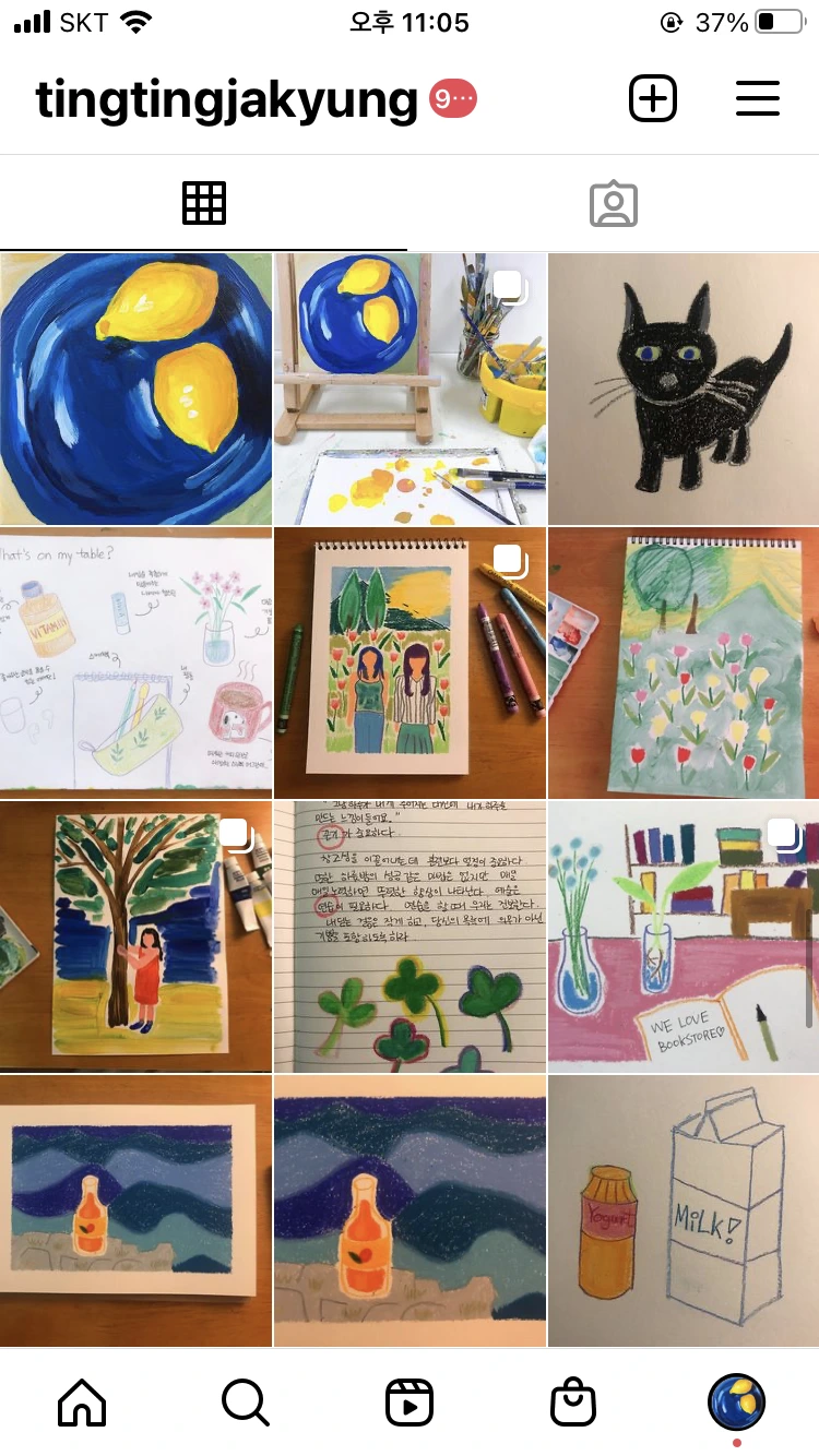 제 그림스타일은 쨍한 색감들, 아이와 같은 마음! 그리고 일상을 주제로 하는 작업인 것 같다요.