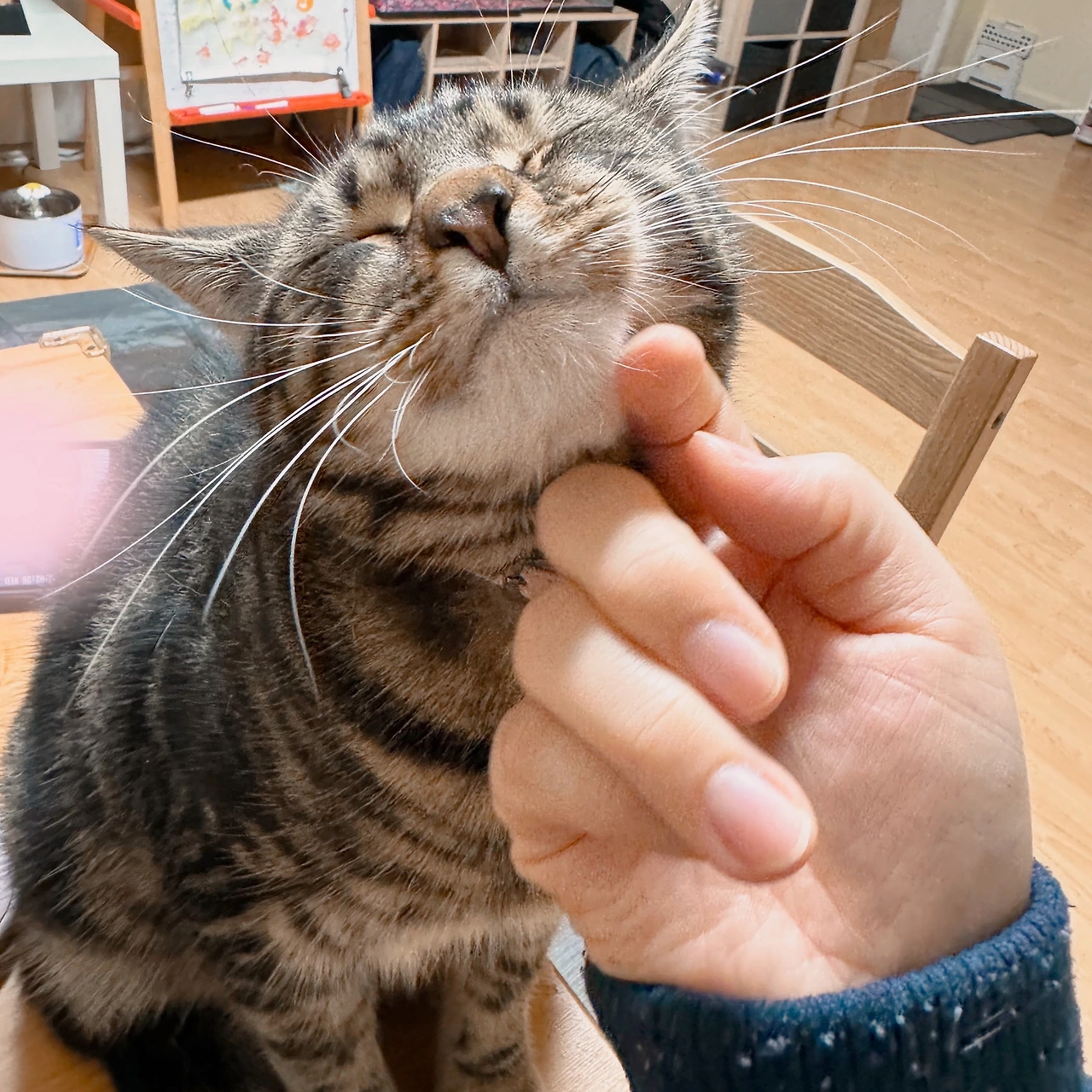 만져 달라고 머리를 들이밀다가, 집사의 얼굴로 엉덩이를 들이밀어 보기도 하고 키보드 치는 집사의 손목에 고개를 얹어 보기도 하는 고등어가 가끔 귀찮을 때도 있지만 치명적인 애교에 녹아버리는 날이 대부분이다.