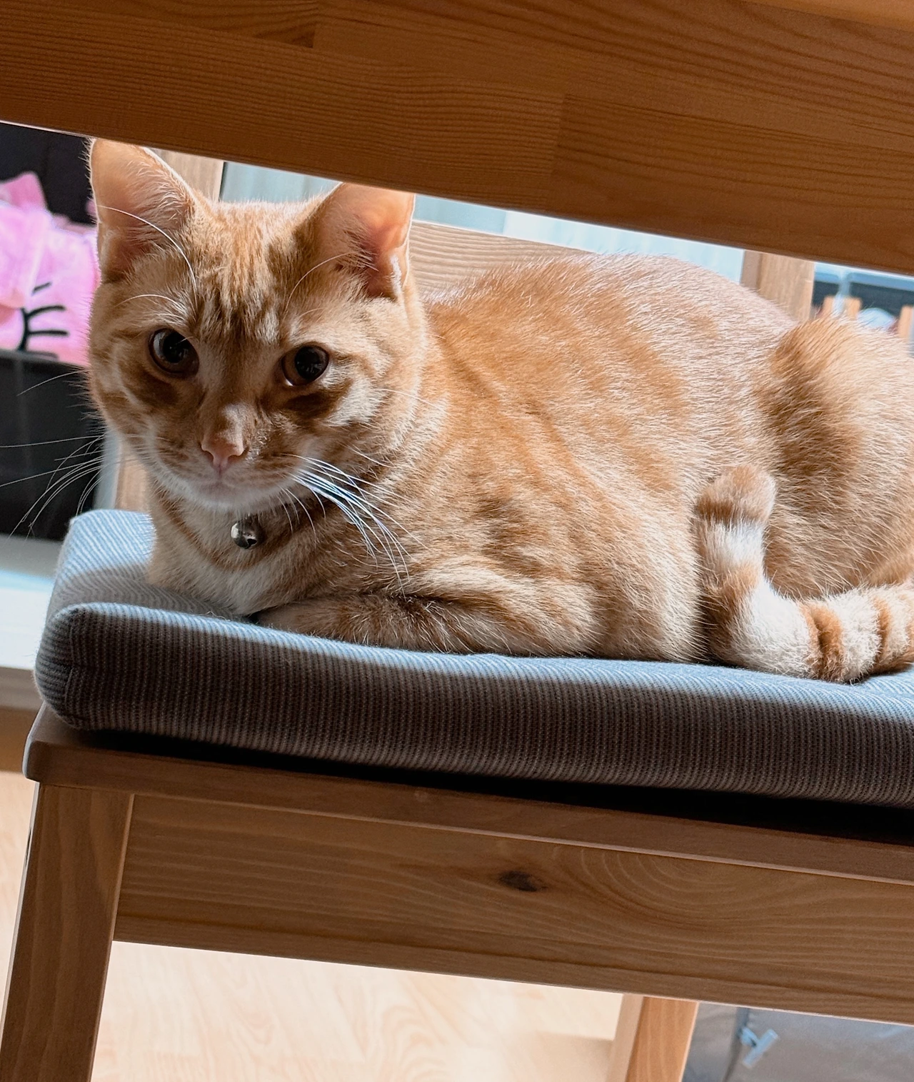 치즈는 혼자만의 시간을 즐기려 하는 나를 감시라도 하듯이 맞은편 의자에 무심히 엎드린다.