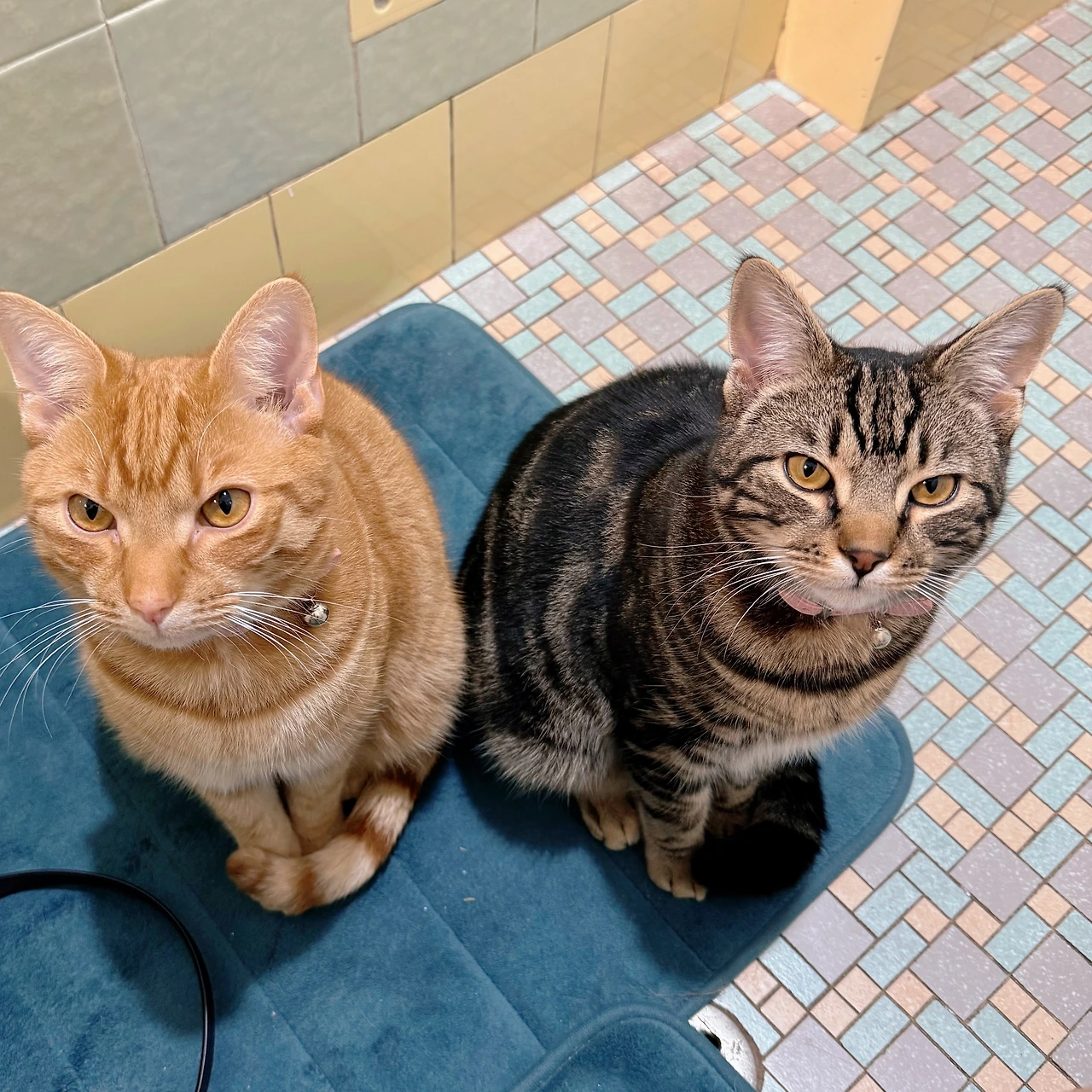집사가 혼자 있는 것은 절대로 봐줄 수가 없는 관심 넘치는 냐옹이들 덕분에 우리 집 화장실은 오늘도 복작복작 인다.