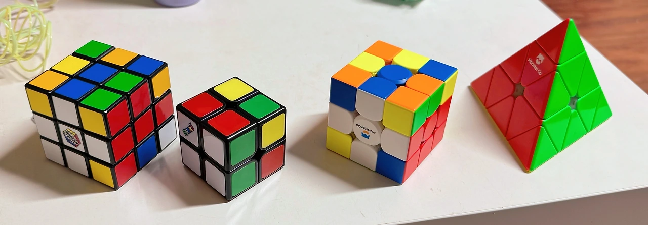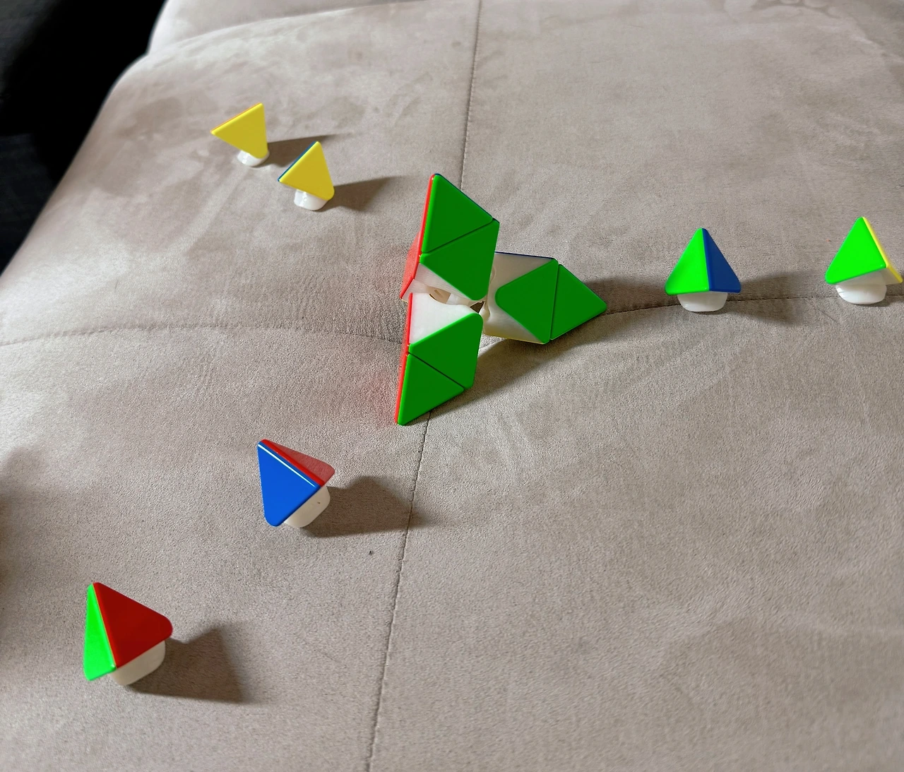 3*3 큐브는 너무 어려우니 2*2를 먼저 해보겠노라고. 아이는 두 종류의 퍼즐을 손에서 갖고 놀았다. 그로부터 2주가 지나고 장을 보러 갔다가 아이는 피라미드 모양 큐브를 발견하고는 흥분했다.