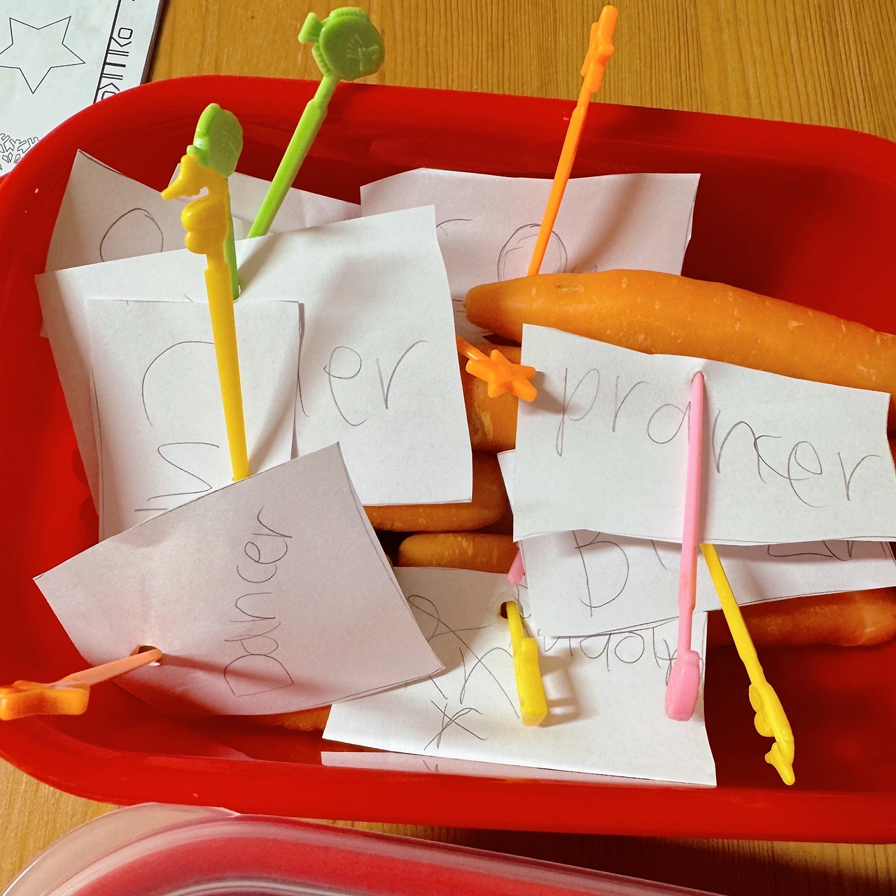 1호는 이름을 하나하나 적어서 당근에 꽂아 두었다. 어느 누구도 빠지면 안 된다면서.