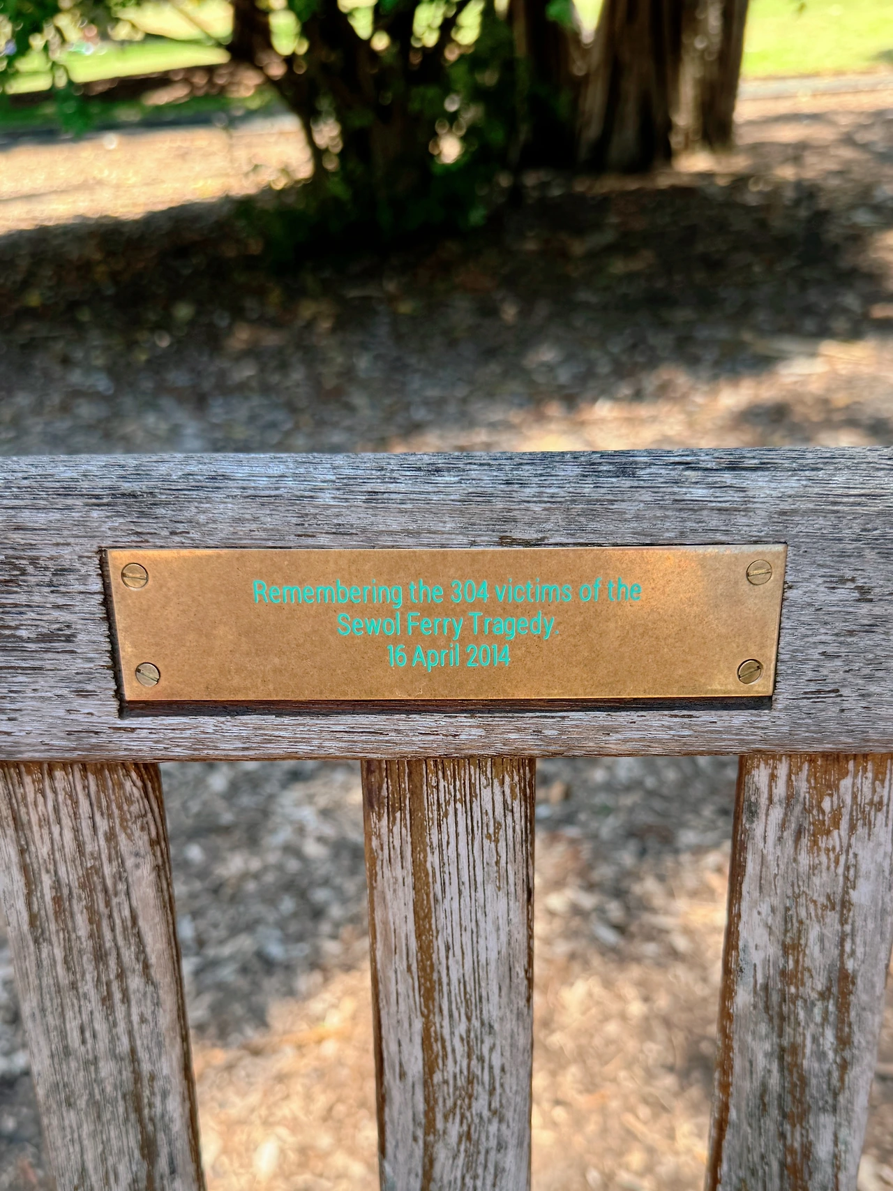 10년 하고도 몇 개월 전 우리가 진도 앞바다에서 잃은 수많은 영혼들… 많은 이들의 눈물을 위해 먼 타국인 시드니 도심 한가운데 위치한 공원 벤치에 팻말을 새겨 넣었다.