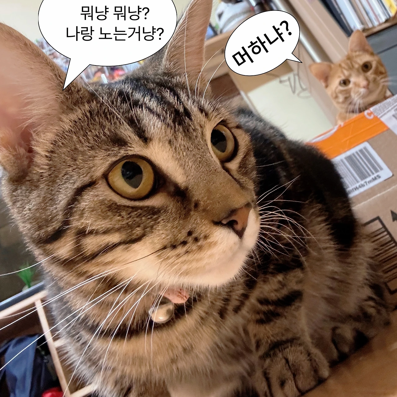 ‘집사~ 뭐 하는 거냥? 뭐 재미있는 거 하냥? 무서운 건 아니냥?'