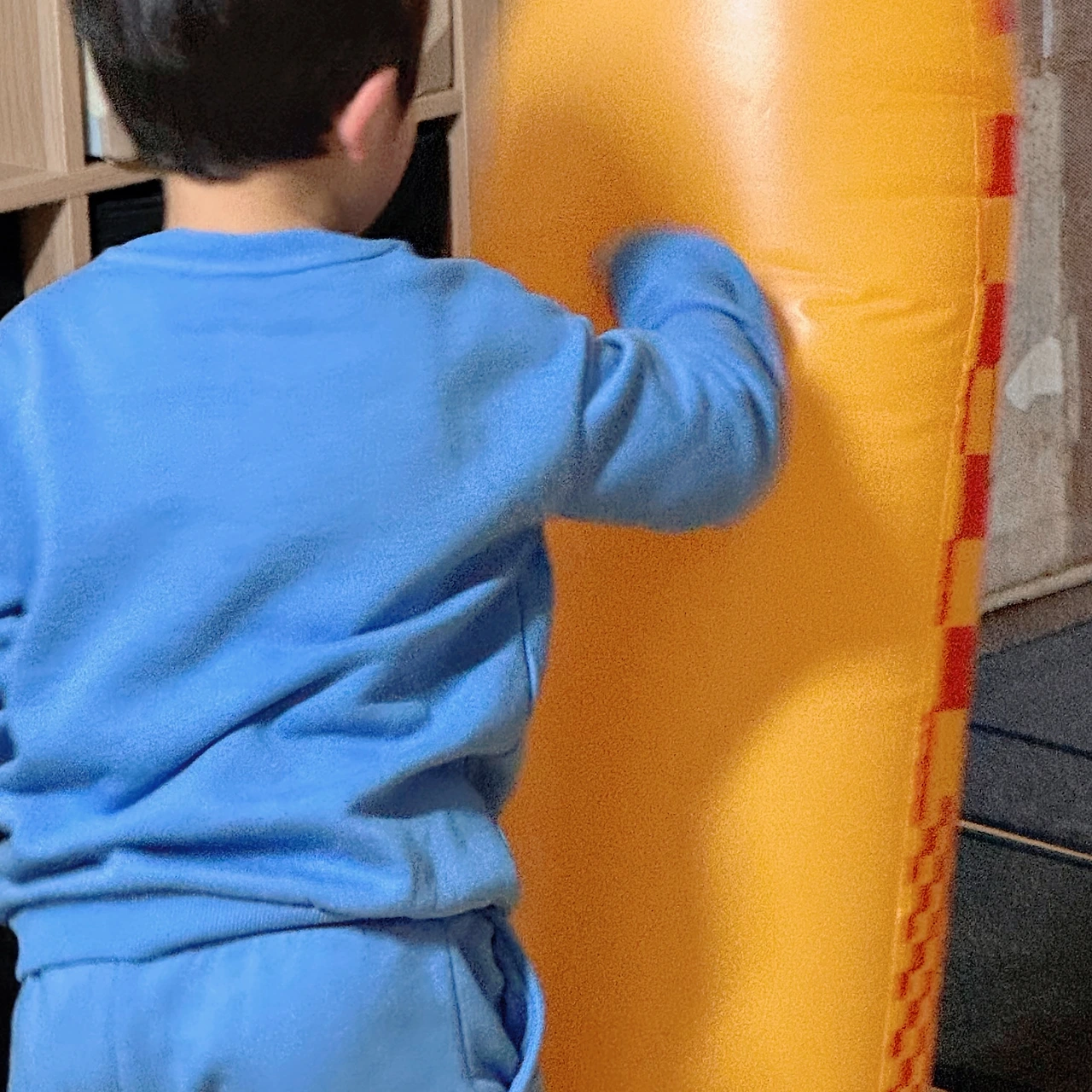 2호를 데리러 가서 집으로 걸어오는 중에 펀칭백에 대해 들은 아이는 이내 발걸음에 부스터를 단 것처럼 집으로 날아왔다. 2호는 현관문을 여는 것과 동시에 펀칭백을 부둥켜안아버렸다.