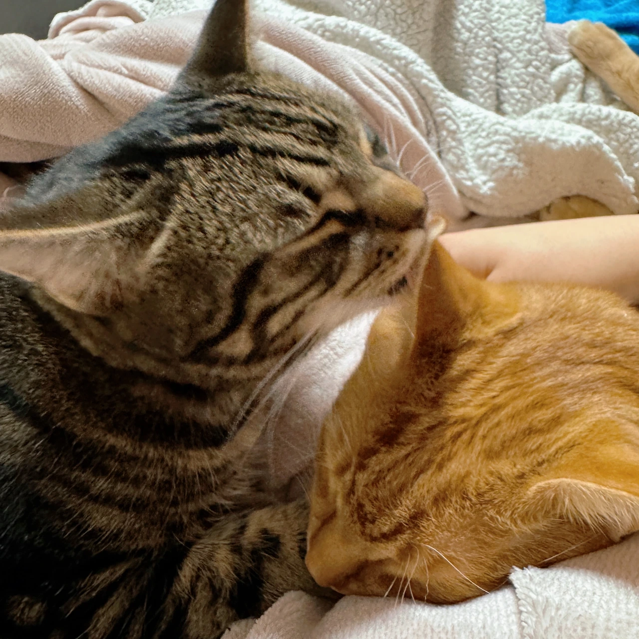 ‘형아, 시원하지? 그러니까 평상시에 그루밍 좀 잘해~’라고 대놓고 그루밍해주며 쪼는 고등어를 보자니 형제는 형제구나 싶다.