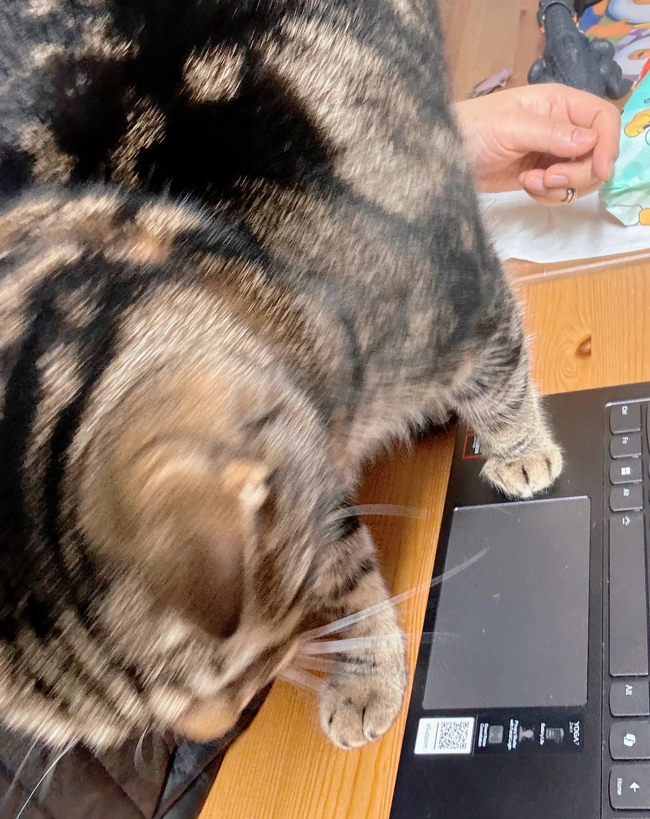 집사가 노트북을 열기 무섭게 와서 방해를 한다.