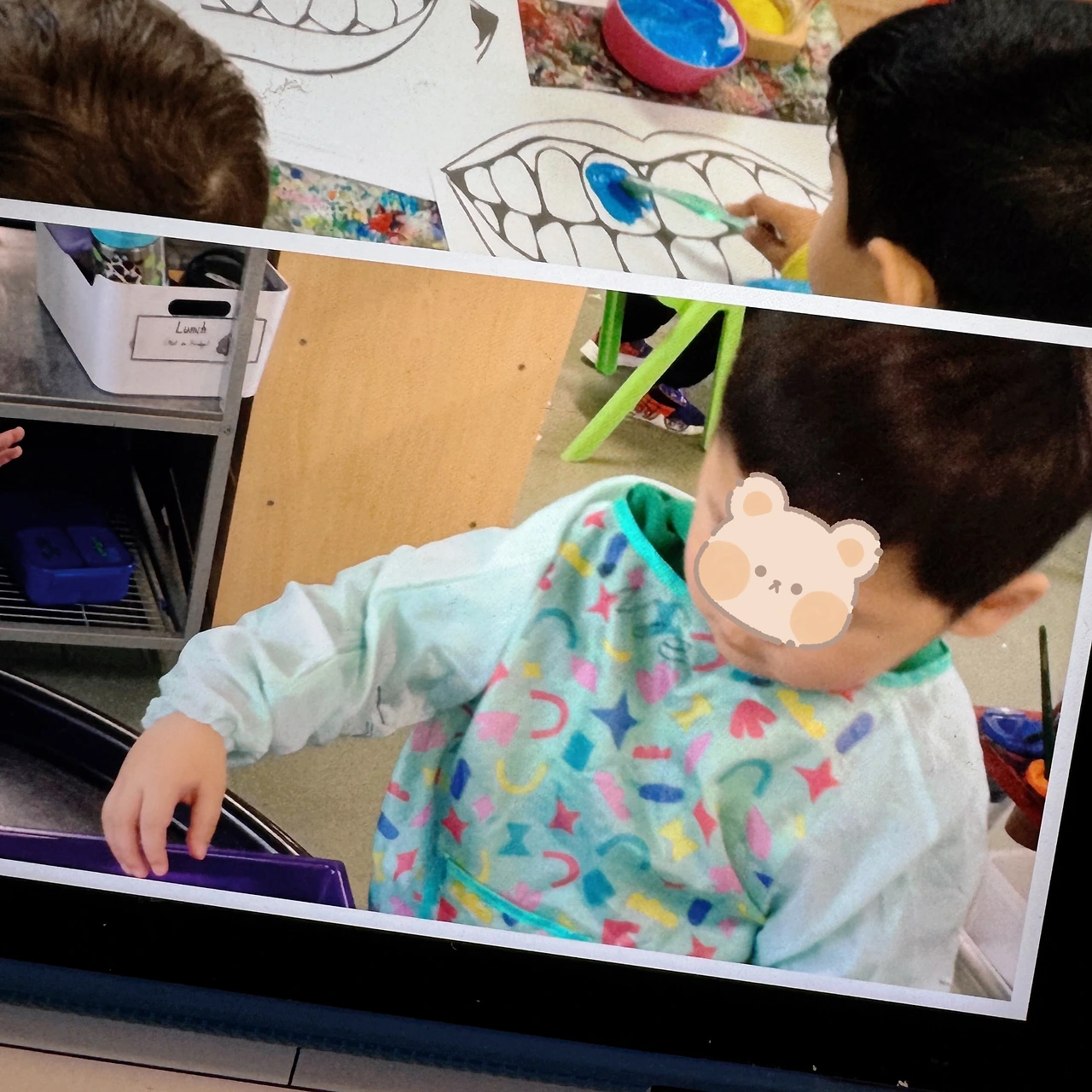 부모들은 아이들을 데리고 올 때 아이들 폴더에 있는 작품들을 가지고 가야 한다.