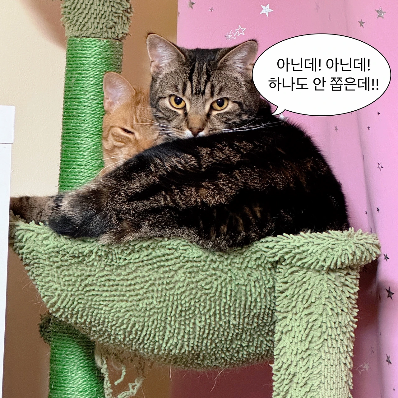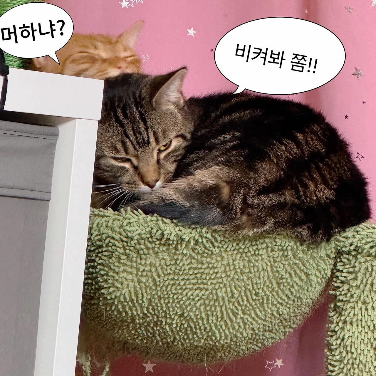치즈는 낮잠도 여기서 자고, 그루밍도 여기서 하며, 큰 소리가 들려 겁이 날 때면 바로 달려가 숨는 공간이다. 그런데 언제부턴가 자꾸 태비가 이곳을 노린다.