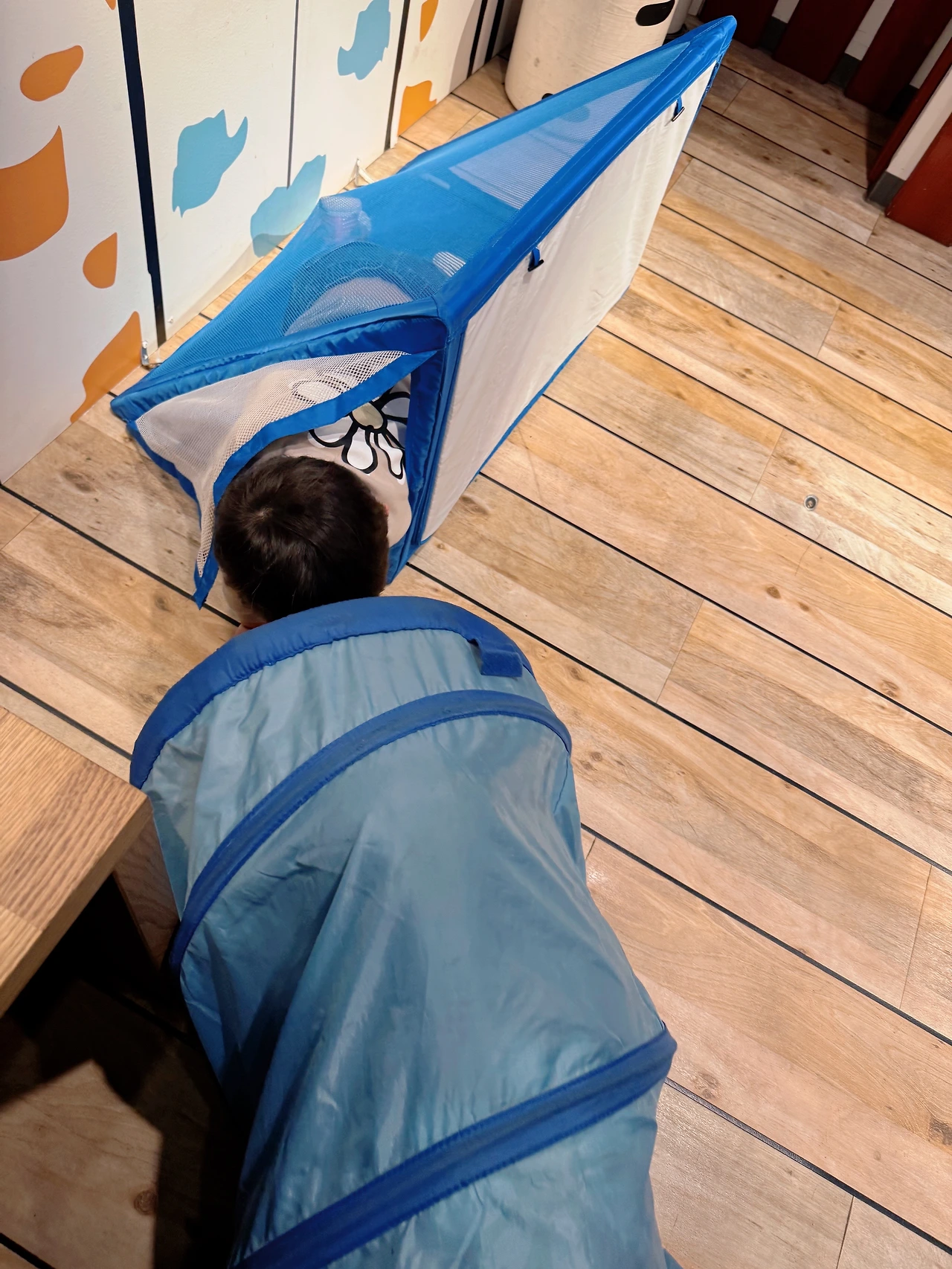 숨바꼭질을 하고 노는데 축구 골대 안으로 들어가서 마치 자기 침대처럼 누워있는 5살과, 저 위에 놓여있는 터널을 부러 동생이 누워있는 축구 골대 옆으로 가져와서 파이프라고, 자기가 파이프 속으로 들어가야 한다고 우기는 8살도 있다.