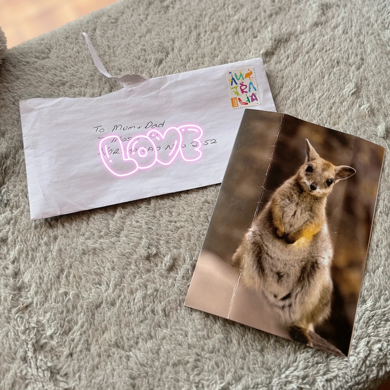 봤더니 수신이 Mum+Dad 그리고 우리 집 주소가 적혀 있었다.