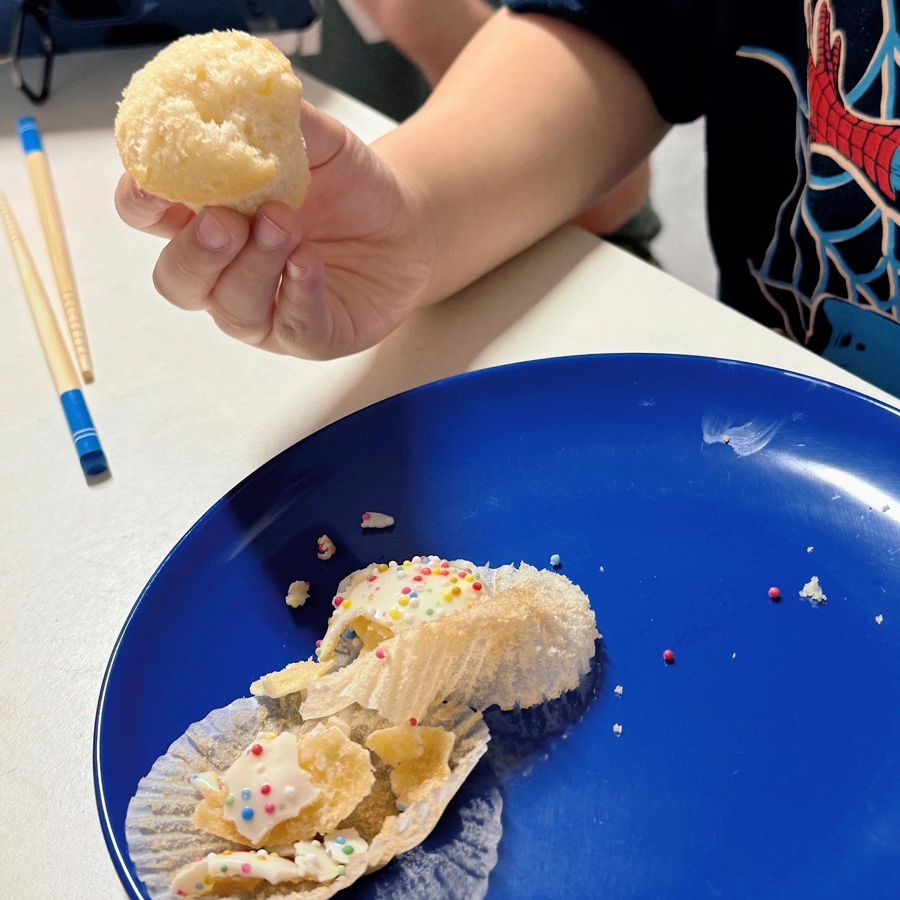 맛있는 초코 미니 컵케이크의 초코를 다 덜어내고 빵만 먹는 아이를 보며~