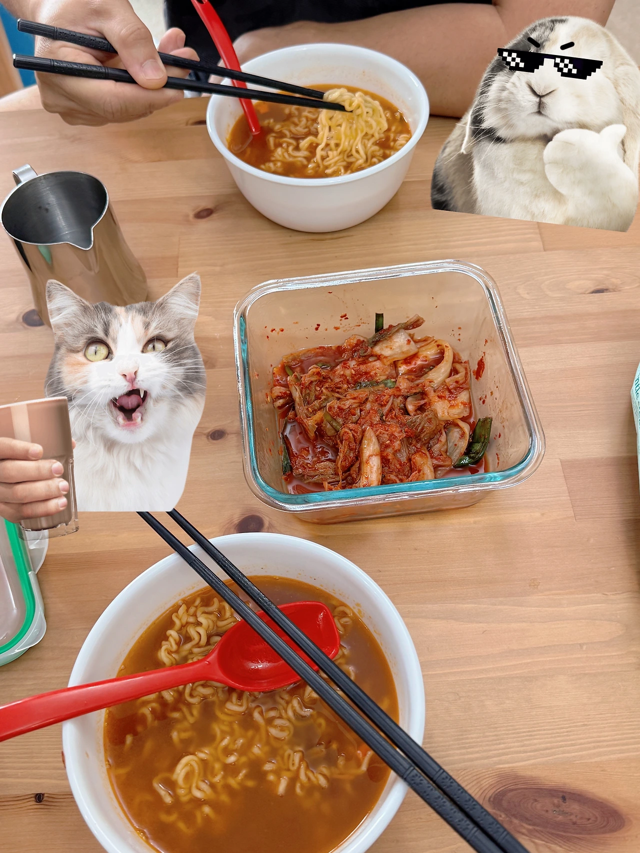 1호가 입학하던 날 아침도 못 먹고 거실을 서성거리던 그때 우리와는 달리 2호가 입학하던 날은 아이들이 모두 등교했다는 기쁨에 취해 우리끼리 아침부터 신라면을 끓여 나눠 먹었다.