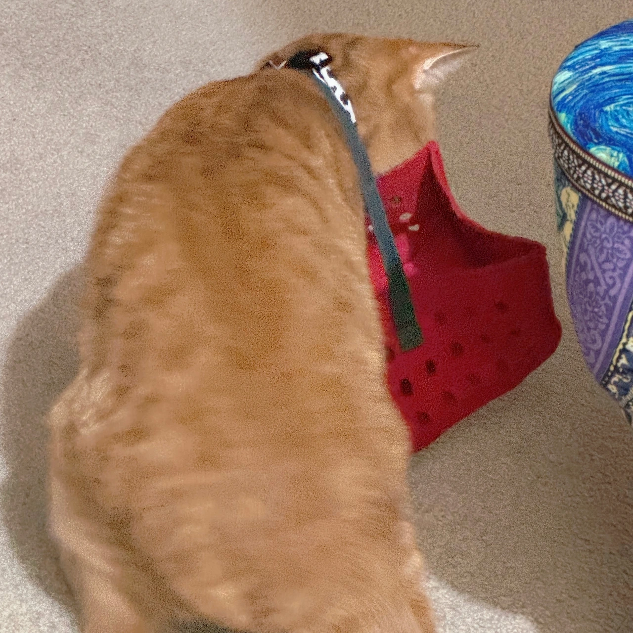 치즈가 목에 무언가를 걸고 아주 생 몸부림을 치고 있었다.