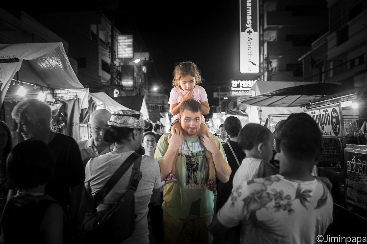 함께 시장에 들어선 일행 중에는 길거리 음식의 유혹에 멈춰선 이도 있었고 쇼핑에 이내 두 손 가득한 이도 있었습니다. 조용히 영상을 담는 친구도 있었고 제법 흥분된 목소리로 유튜브 라이브 방송을 진행하는 친구도 있었죠. 이들을 뒤로 하고서 마치 밀물과 썰물처럼 오가는 사람들의 행렬에 동참해 걷던 저의 발걸음이 그를 발견하는 순간, 얼음처럼 멈추고 말았습니다.