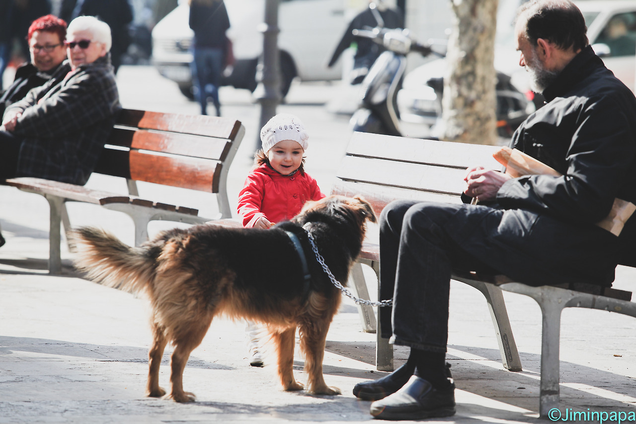 손을 내밀어 강아지에게 호감을 표현하는 소녀를 바라보는 노인의 표정은 부드러웠습니다. 아니 저를 포함해 이 모습을 보는 주변의 모든 사람들의 마음이 비슷한 영역대의 주파수에서 울리는 따스함을 느끼고 있었겠죠.
