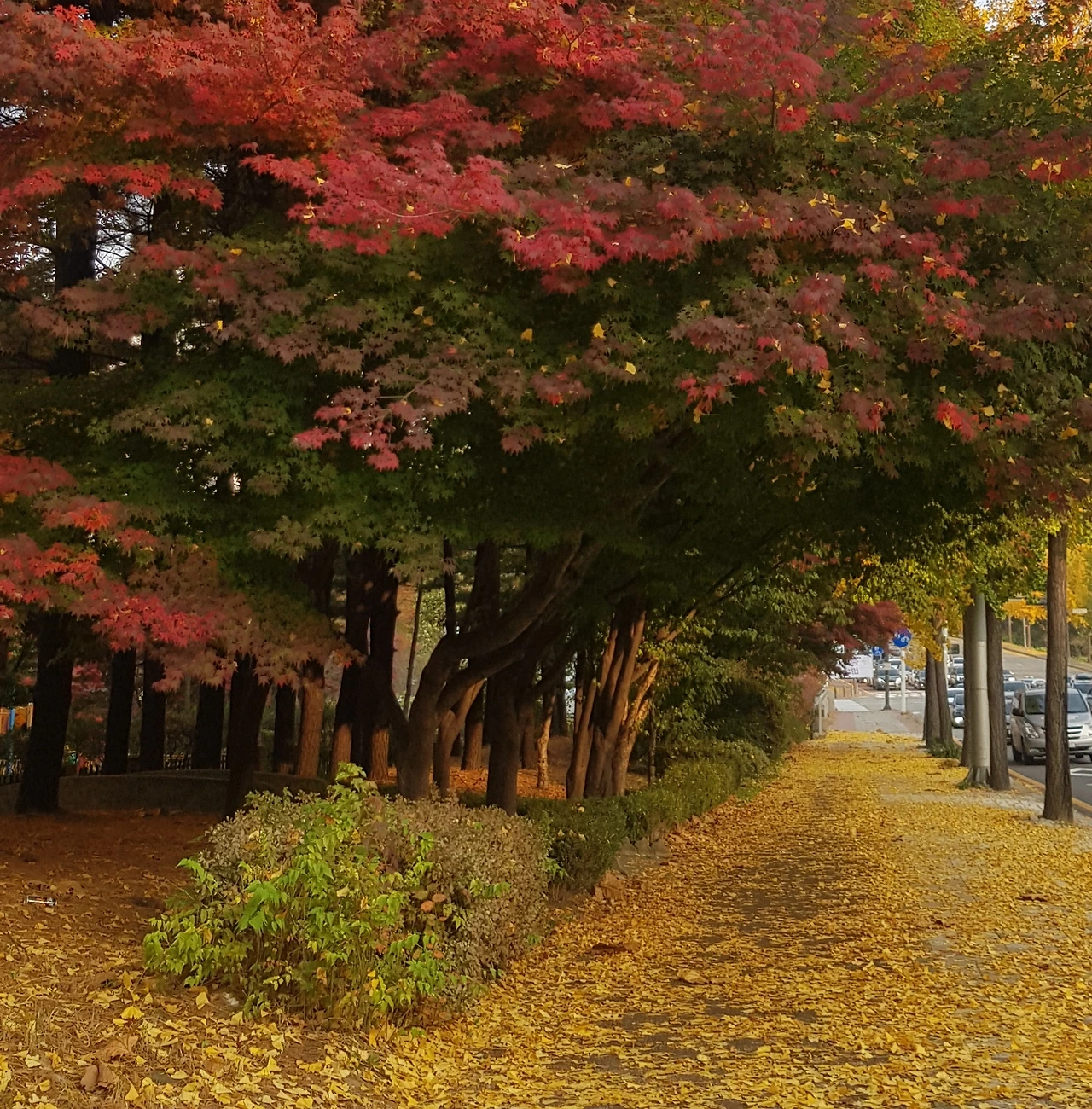 바닥을 가득 채운 낙엽을 보니 나뭇잎과 뿌리의 이야기가 들렸다. 높은 가지든 낮은 가지든 차별을 두지 않았던 나무의 넉넉한 마음을 되새겨 본 날이다.