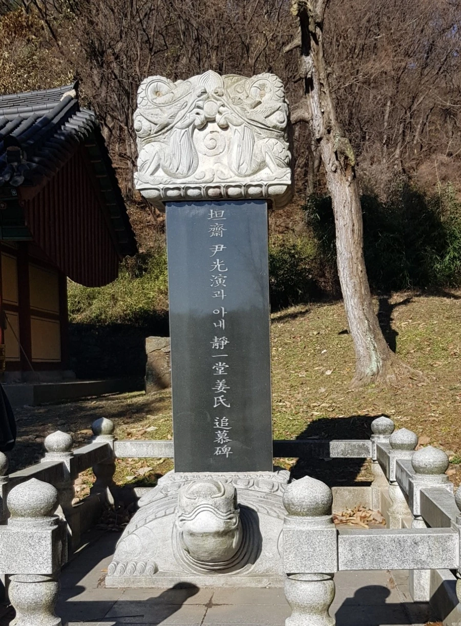 사당 앞 추모비에는 성남시 향토유적 제1호로 지정된 정일당과 남편 윤광연 대한 간략한 설명이 적혀 있었다. 주체적 여성으로서의 삶과 이상적 부부애를 보여줬다는 내용이었다. 공부한 내용을 복기하며 큰 소리로 읽었다. 아는 만큼 보이는 법이니 사전정보 없이 왔다면 감흥이 적었으리라 .
