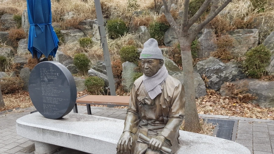 심우장을 가기로 했다. 성북동 기행중 가장 기대되는 곳이라 설레였다. 심우장으로 가려면 가파른 길을 지나야 하는데 오르기 전 초입은 만해 산책 공원이 있다. 동상이 있는 긴 의자는 님의 침묵이 적힌 시비가 있고 가운데 앉아서 기념사진을 찍을 수 있게 해놓았다.
