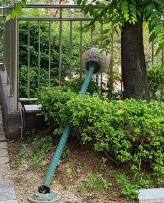 독서실 가는 쪽 가로등이 쓰러졌어요. 아이 데리러 가는 시간쯤엔 분명히 괜찮았는데 사고 난지 얼마 안 된 거 같아요