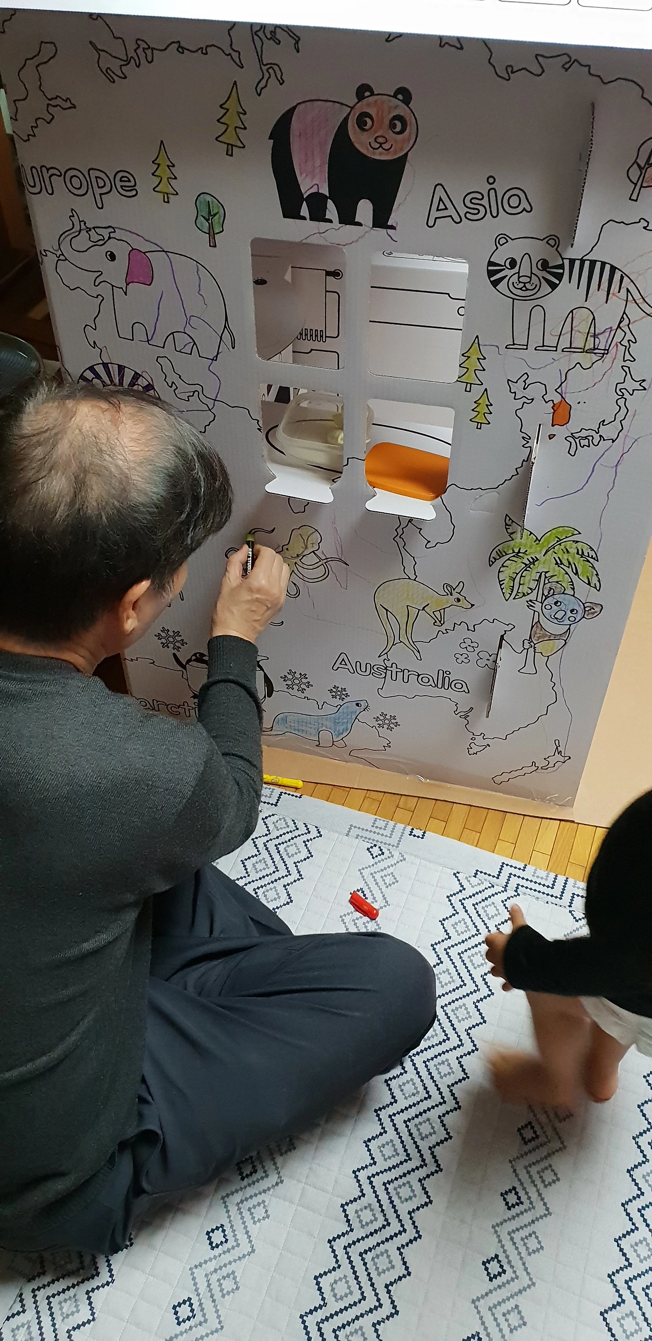 남자끼리는 통하는 걸까요? 아빠는 퇴근길에 딸내미 몰래 손주를 위한 장난감을 하나둘씩 사 오세요. 그러고는 딸 몰래 꺼내주시죠. 버릇 나빠진다, 짐 늘어난다 투정을 해도 소용없습니다. 어느 날은 드론을 사 오셨어요. 드론을 날린다는 핑계로 손주를 할아버지 회사에 데려가셨어요. 지수 인생 최대의 이벤트 날이었습니다. 할아버지 회사에는 그림책으로 보던, 장난감으로 가지고 놀던 트럭과 지게차, 각종 기계들이 쌓여있었거든요. 트럭 뒤에도 올라타보고, 지게차 운전석에도 앉아보고, 드론 날리기는 뒷전이고 할아버지가 보여주는 신기한 세상을 구경하기에 바빴죠. 이날 이후 할아버지는 지수의 모든 애정을 독차지하게 됩니다. 엄마는 절대 사주지 않는 막대 사탕도 아이스크림도 다 할아버지한테 배웠어요. 다 해주고 싶은 할아버지의 사랑과 참을 수 없는 엄마의 팽팽한 대결이 이뤄졌죠. 할아버지가 막대사탕을 주셨다며 얼굴에 짓궂은 웃음을 띠며 자랑하는 아이를 보며 너도 일탈이 필요했겠구나, 365일 지켜야 하는 엄마의 규칙이 답답했겠구나 싶더라고요. 나의 선택이 아이에게서 할아버지 할머니와의 사랑과 시간을 빼앗은 게 아닐까 하는 미안한 마음도 들어요.
