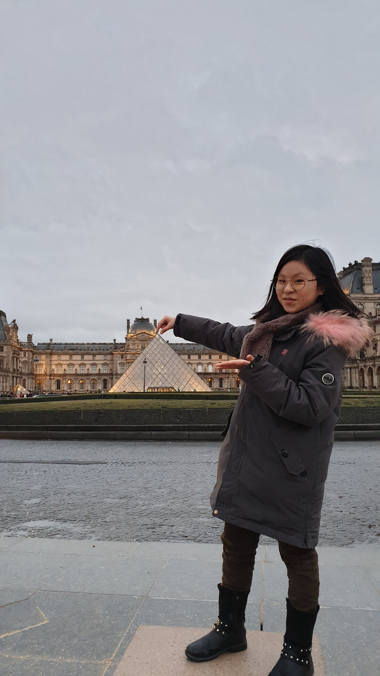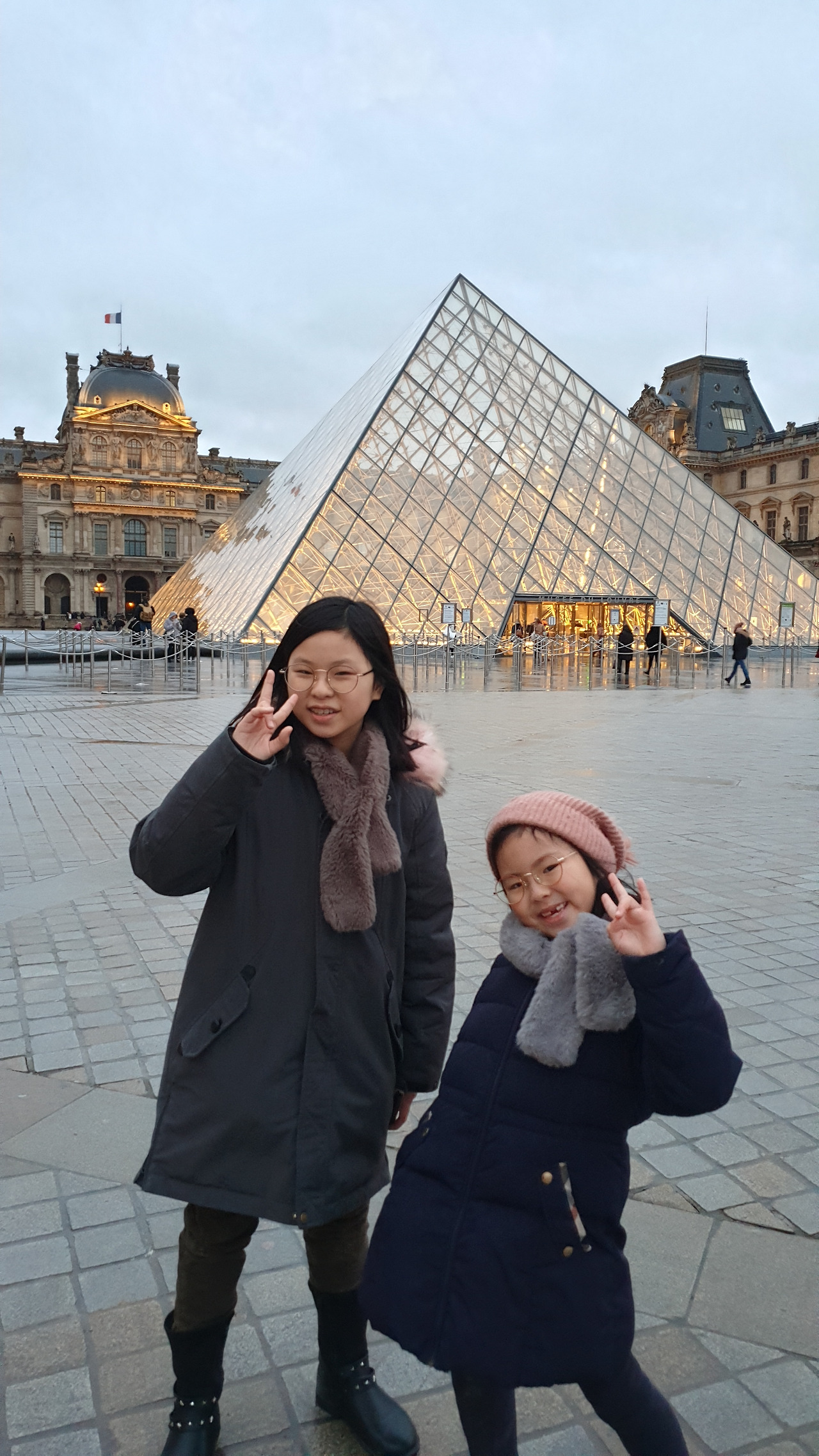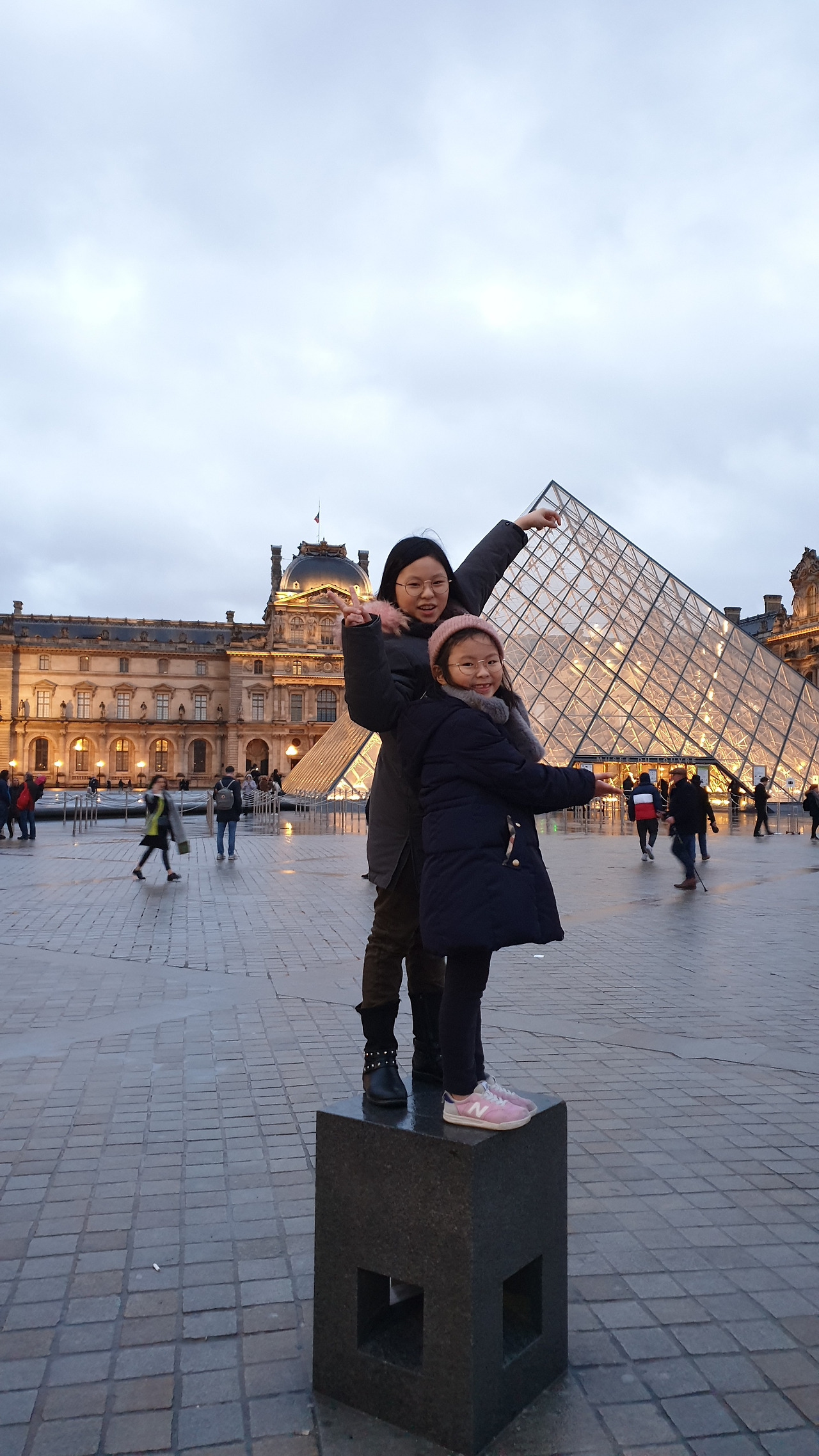 루브르 박물관 내에서 사람에 치이며 만보에 가까운 걸음을 재촉하다 보니 몸과 마음이 버거웠을 무렵 문득 창밖을 바라보니 새로운 여유의 세계가 열린다. 아이들 또한 이 그림이 저 그림 같고 저 그림이 이 그림 같은 느낌을 받은 건지 창밖을 한참이나 바라본다. 하루 만에 다 볼 수 없는 규모인걸 어쩌겠니. 우리만의 관람규칙대로 굵직굵직한 작품만 보고 오디오북으로 내용을 이해했으니 여기까지 보는 걸로! 북적대는 곳에서 워크북 정리를 하지 못해 information앞 소파에 앉아 마무리하고 피라미드 실물을 보기로 하고 나선다.