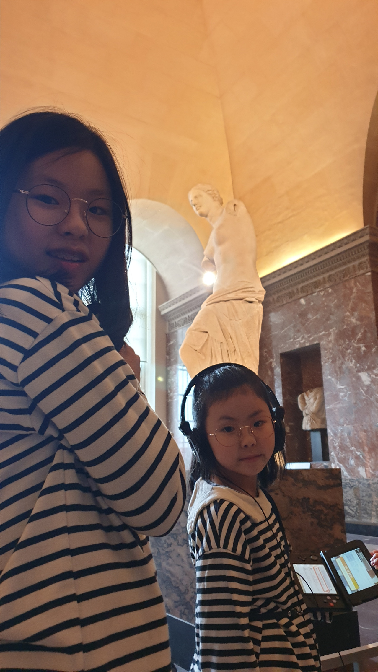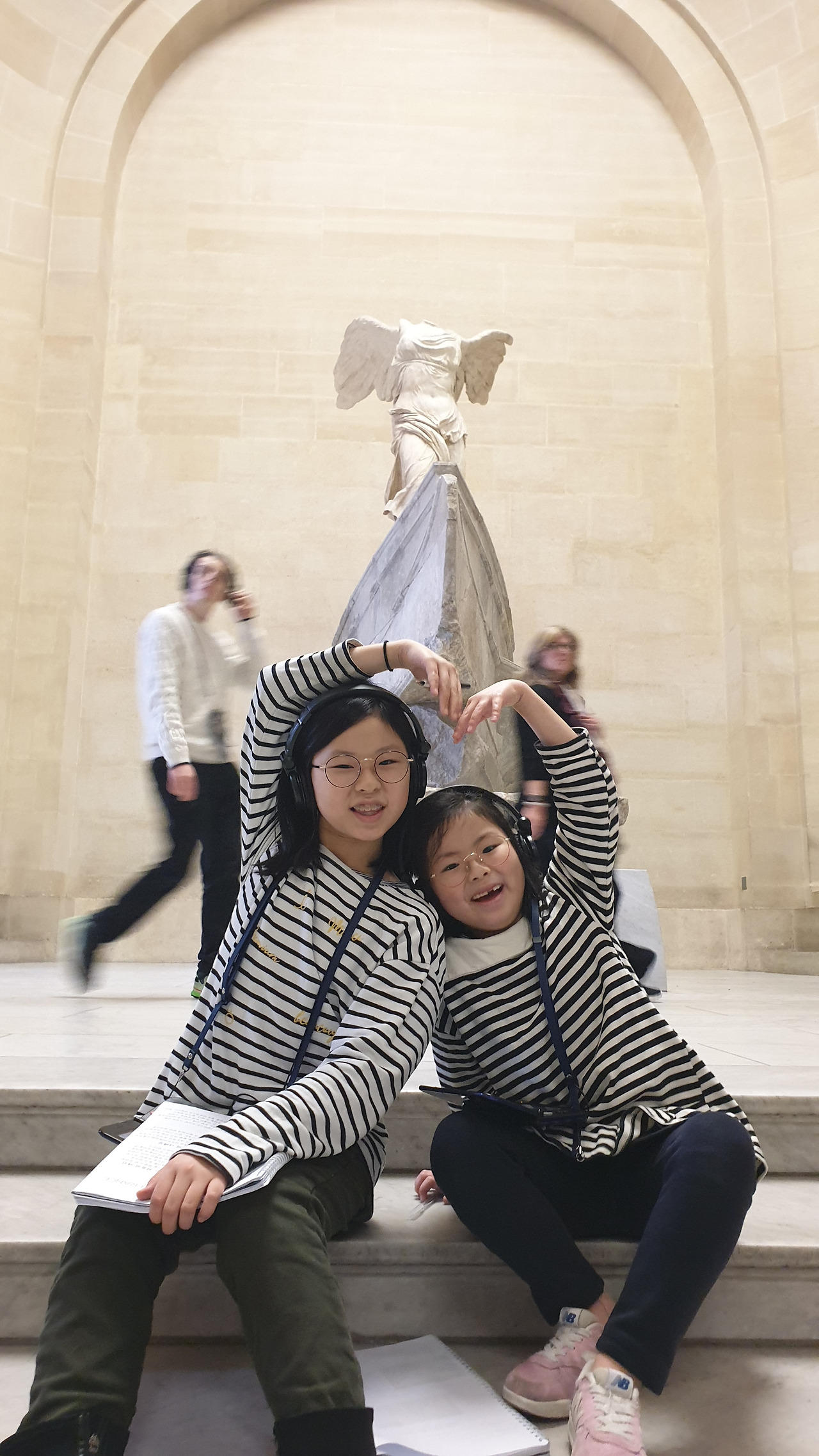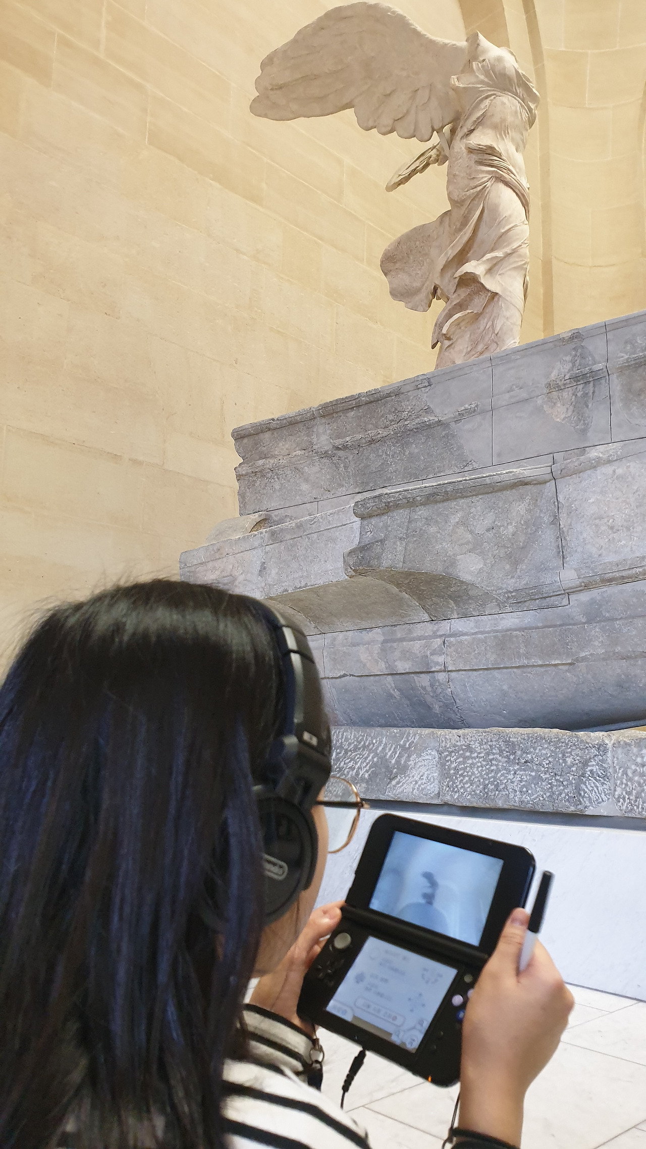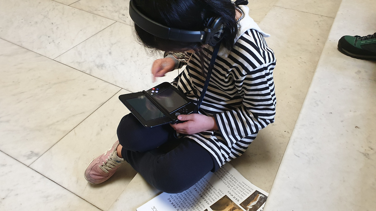 아이들은 게임기처럼 생긴 오디오북을 각자의 목에 야무지게 걸고 한 손에는 엄마표 유럽 워크북을 챙겨 <사모트라케의 니케상> 앞에 섰다. 시키지도 않았는데 계단에 털썩 앉아 오디오북에 귀 기울이는 아이들의 모습을 보니 묘한 기분이 올라온다. 아무런 배경지식 없이 무심하게 전시를 대했던 나의 20대가 부끄러워서였는지, 아이들과 함께 보아서 감회가 새로워서 그런 건지 아니면 아이들이 집중해주는 모습이 고마워서 그런 건지 알 수 없는 기분에 벅차오른다.