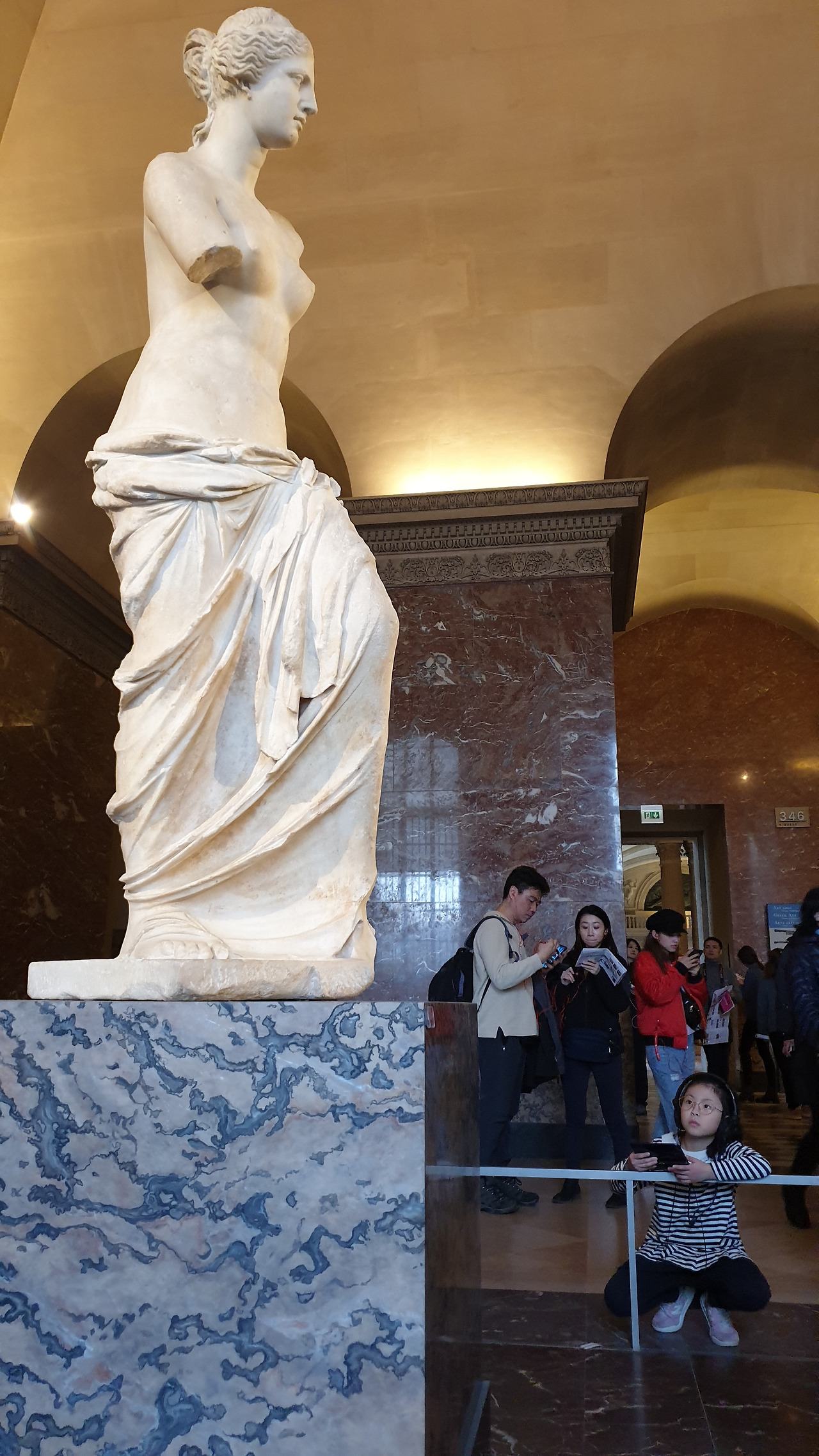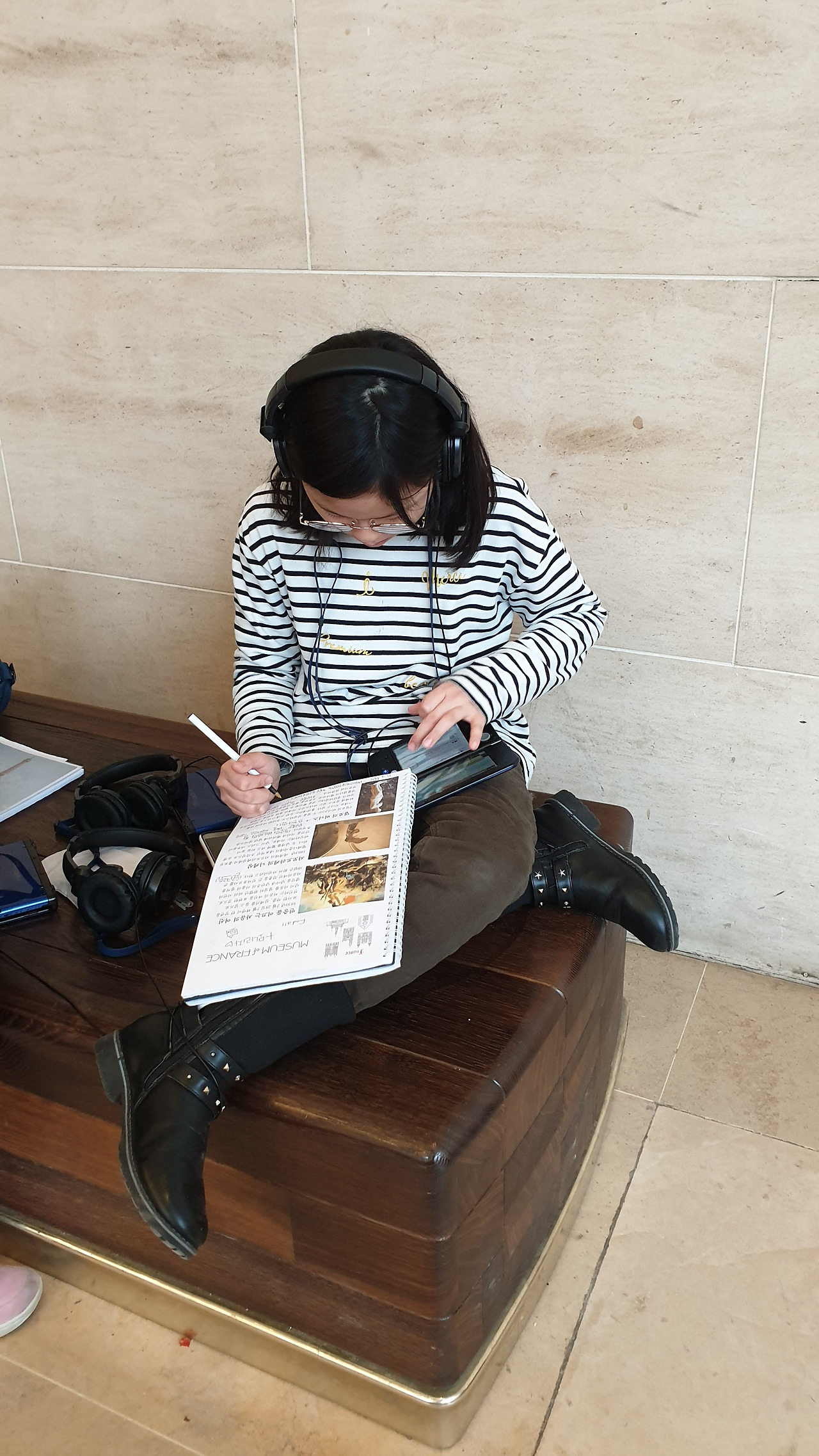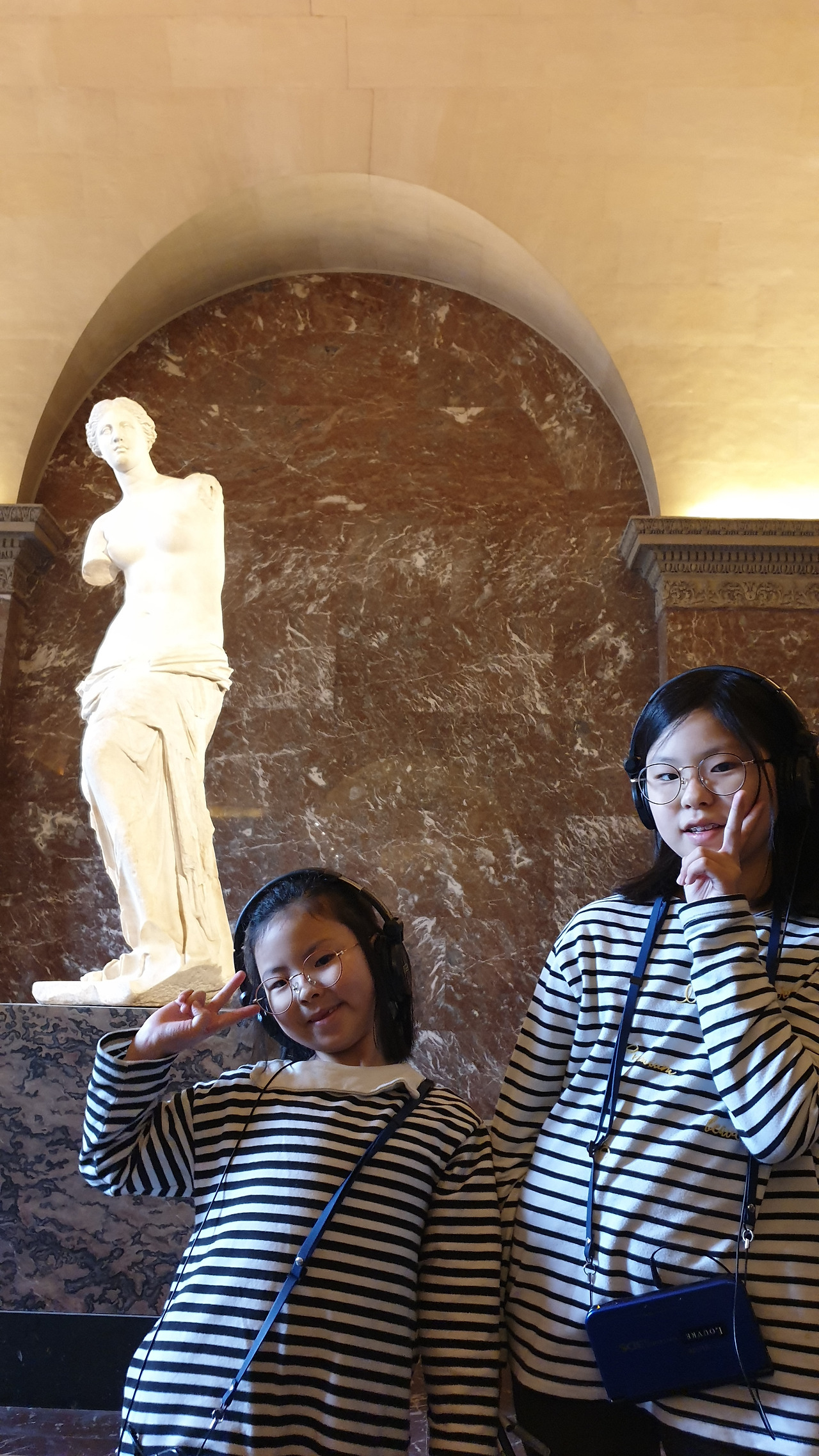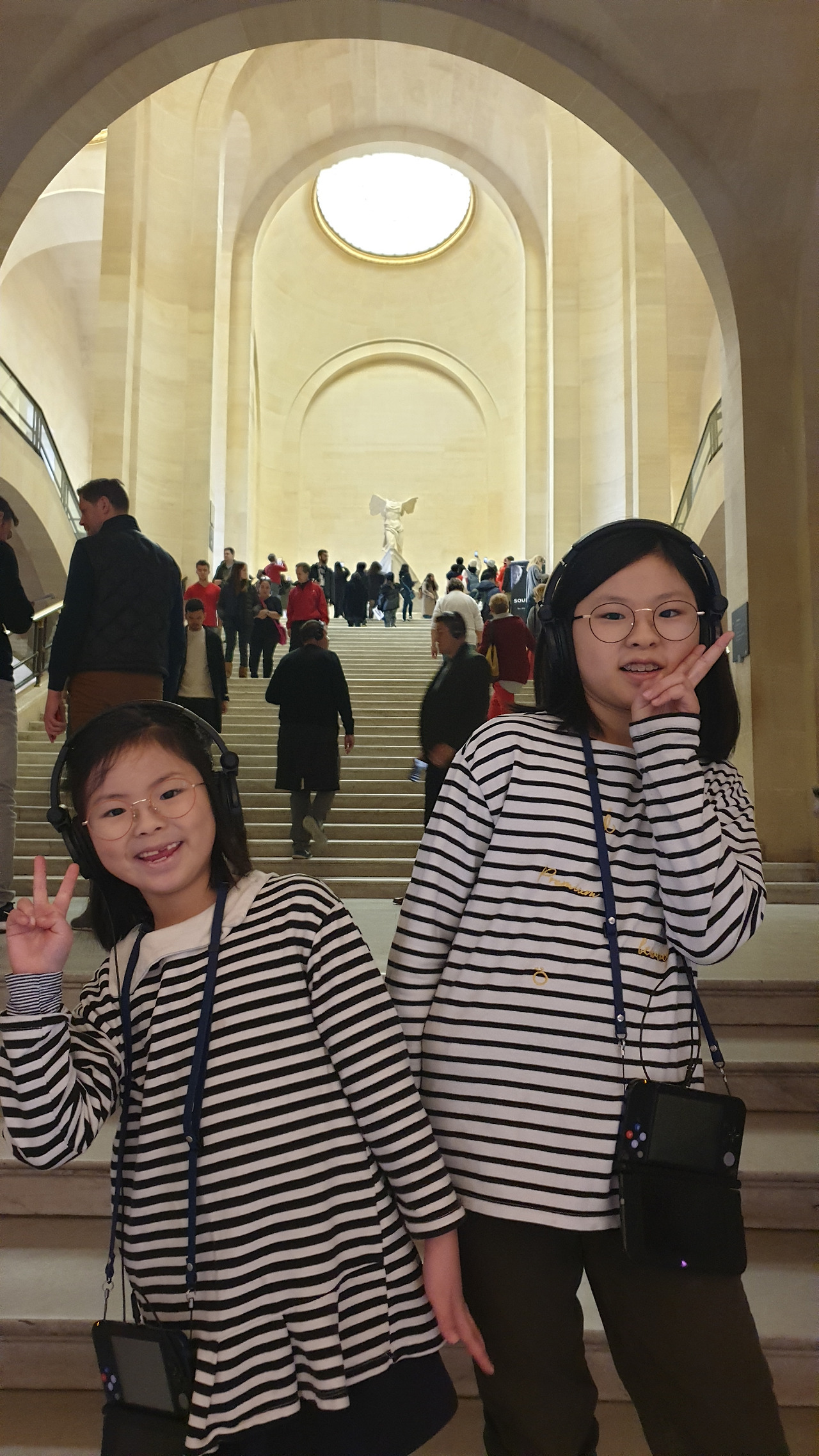 아이들은 게임기처럼 생긴 오디오북을 각자의 목에 야무지게 걸고 한 손에는 엄마표 유럽 워크북을 챙겨 <사모트라케의 니케상> 앞에 섰다. 시키지도 않았는데 계단에 털썩 앉아 오디오북에 귀 기울이는 아이들의 모습을 보니 묘한 기분이 올라온다. 아무런 배경지식 없이 무심하게 전시를 대했던 나의 20대가 부끄러워서였는지, 아이들과 함께 보아서 감회가 새로워서 그런 건지 아니면 아이들이 집중해주는 모습이 고마워서 그런 건지 알 수 없는 기분에 벅차오른다.