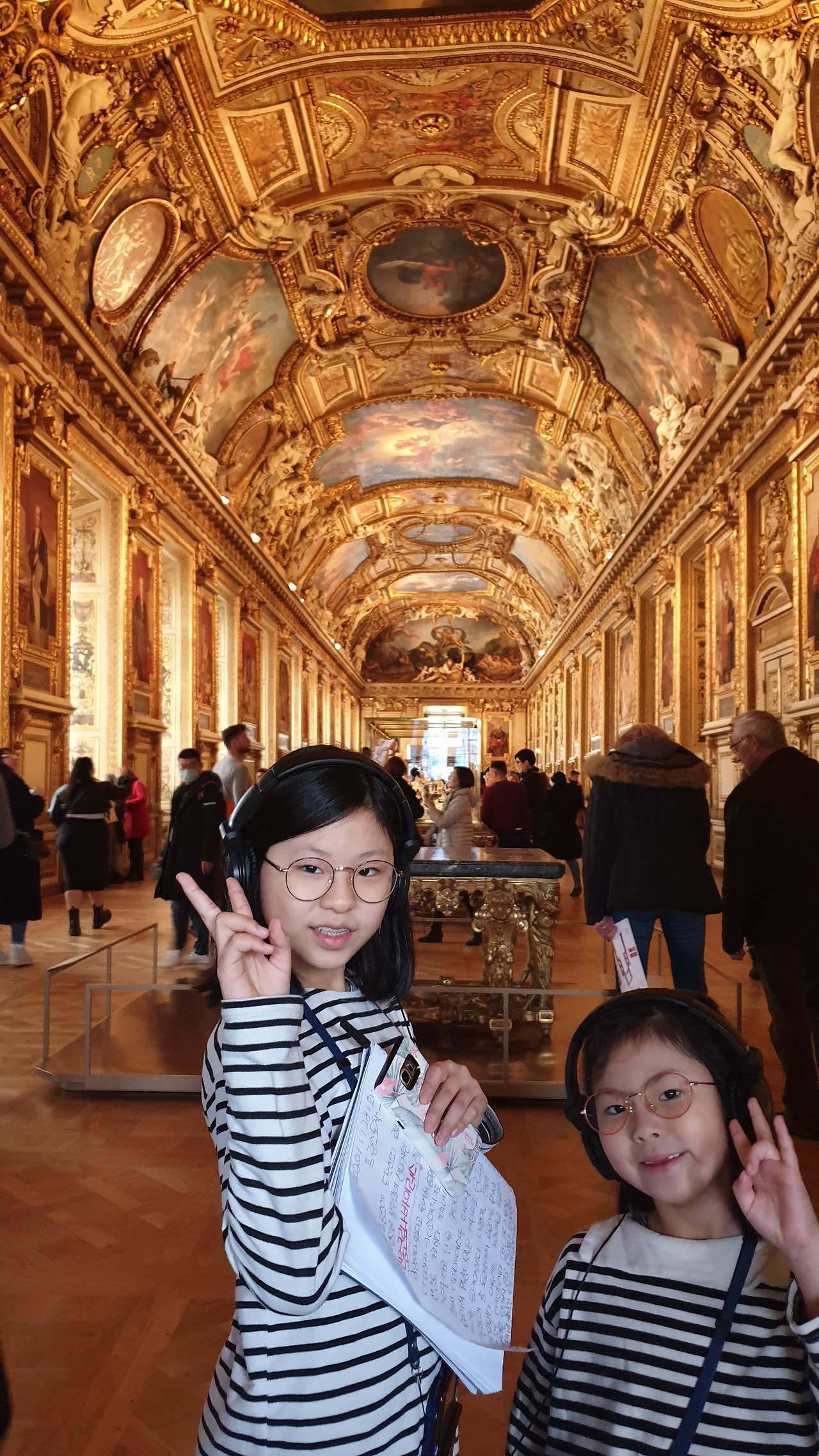 루브르 박물관 입장과 동시에 수많은 인파를 보자마자 마음이 조급해졌다. 얼른 information에 문의하여 clock room에 우산과 무거운 외투를 보관하고 한국어 오디오 가이드를 대여했다. 아이들과 드디어 전시실 입장을 해보려고 하지만 40여 만점의 세계 최대 예술품을 소장한 세계 3대 박물관의 규모에 어떻게 잘 접근해야 할지 선뜻 엄두가 나지 않았다. 그리고 아이들에게는 지친 루브르 박물관의 기억을 남겨주고 싶지 않았다.