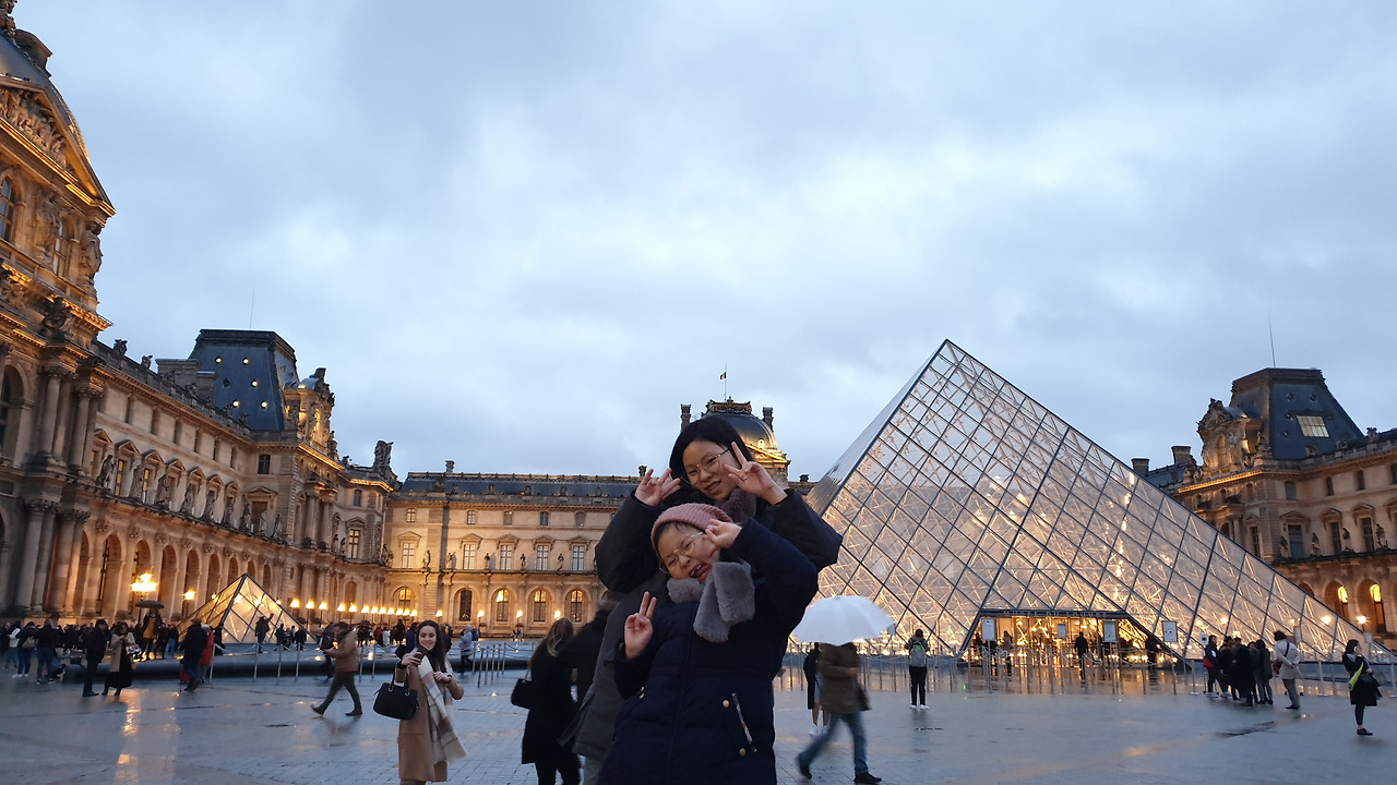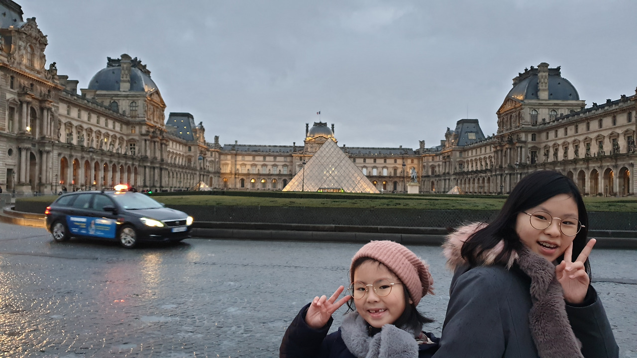 한국에서 미리 예약해둔 파리 뮤지엄 패스 실물을 받기 위해 메트로에 몸을 실었다. 이동하는 내내 아이들은 드디어 레이디 버그에 나오는 루브르 박물관 유리 피라미드의 실물을 본다는 생각에 들뜬 마음을 입으로 쉬지 않고 표현했다. 그에 반해 나는 남편과 함께 십여 년 전에 루브르 박물관을 방문해본 경험이 있었고 그 당시 유리관에 고이 모셔둔 '모나리자' 외에는 인상 깊은 작품이 없을 정도로 수많은 인파와 광활한 공간에 너무 고생했었던 기억이 있어 이렇다 할 기대감은 없었다. 거기다 메트로에서 내려 야속하게 추적대는 빗속을 뚫고 파리 뮤지엄 패스 사무실을 찾는데 도저히 찾을 수 없어 한참을 헤맸으니 그 마음 오죽했으랴.