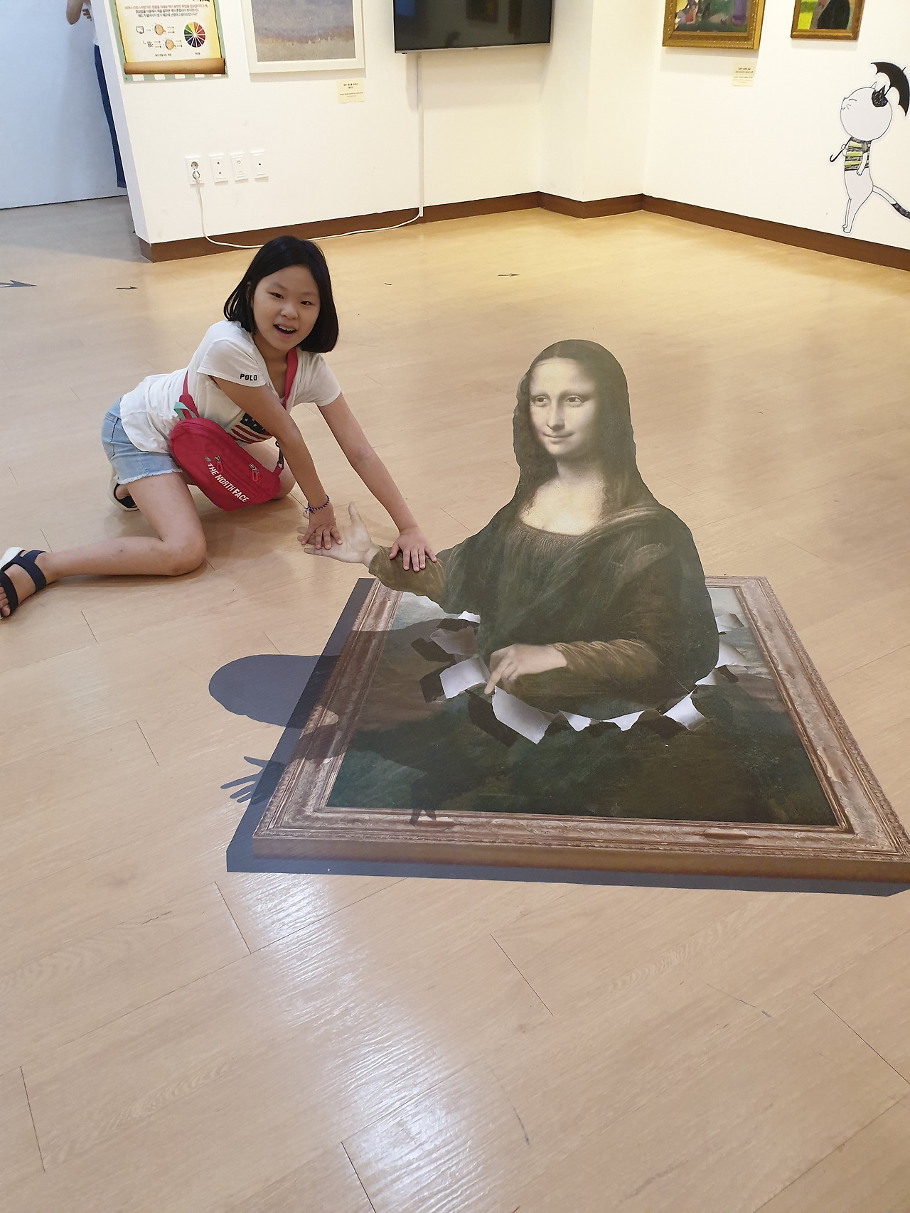 삼엄한 경계 속에서 '눈치 보며' 모나리자를 감상하다니! 사진 찍는 아이들의 얼굴에는 긴장감이 돌았고, 공장에서 물건 찍어대듯 모나리자 앞에서 사진을 찍어야 하는 이 상황이 참 안타까웠다. 진심을 다해 가까이 가서 오래 두고 자세히 보고 싶었지만 모나리자를 지키는 담당자는 훠이훠이 손을 내저으며 그럴만한 여유는 주지 않았다. 아이들이 1차원적인 눈썹의 존재만 논하고 돌아올 수밖에 없다는 사실이 서글펐다. 가까이하기엔 너무 먼 '진짜 모나리자'의 하늘을 찌를듯한 도도함은 한국 전시에서 만난 '가짜 모나리자'를 순식간에 헤픈 여인으로 만들어버렸다.