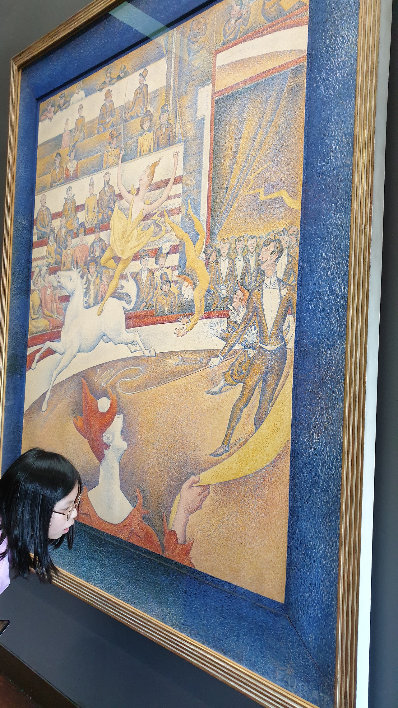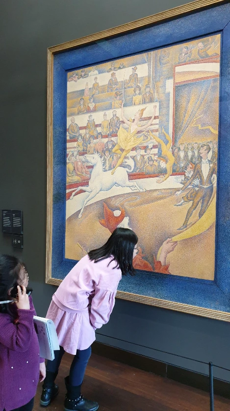 쇠라의 점묘법으로 완성한 작품을 만나보면 인간의 인내심과 한계를 시험하는 듯한 느낌이 들 정도로 정교하였고 이 작품이 쇠라의 마지막 작품이자 대표작이라는 사실에 가슴 한구석이 먹먹했다.
