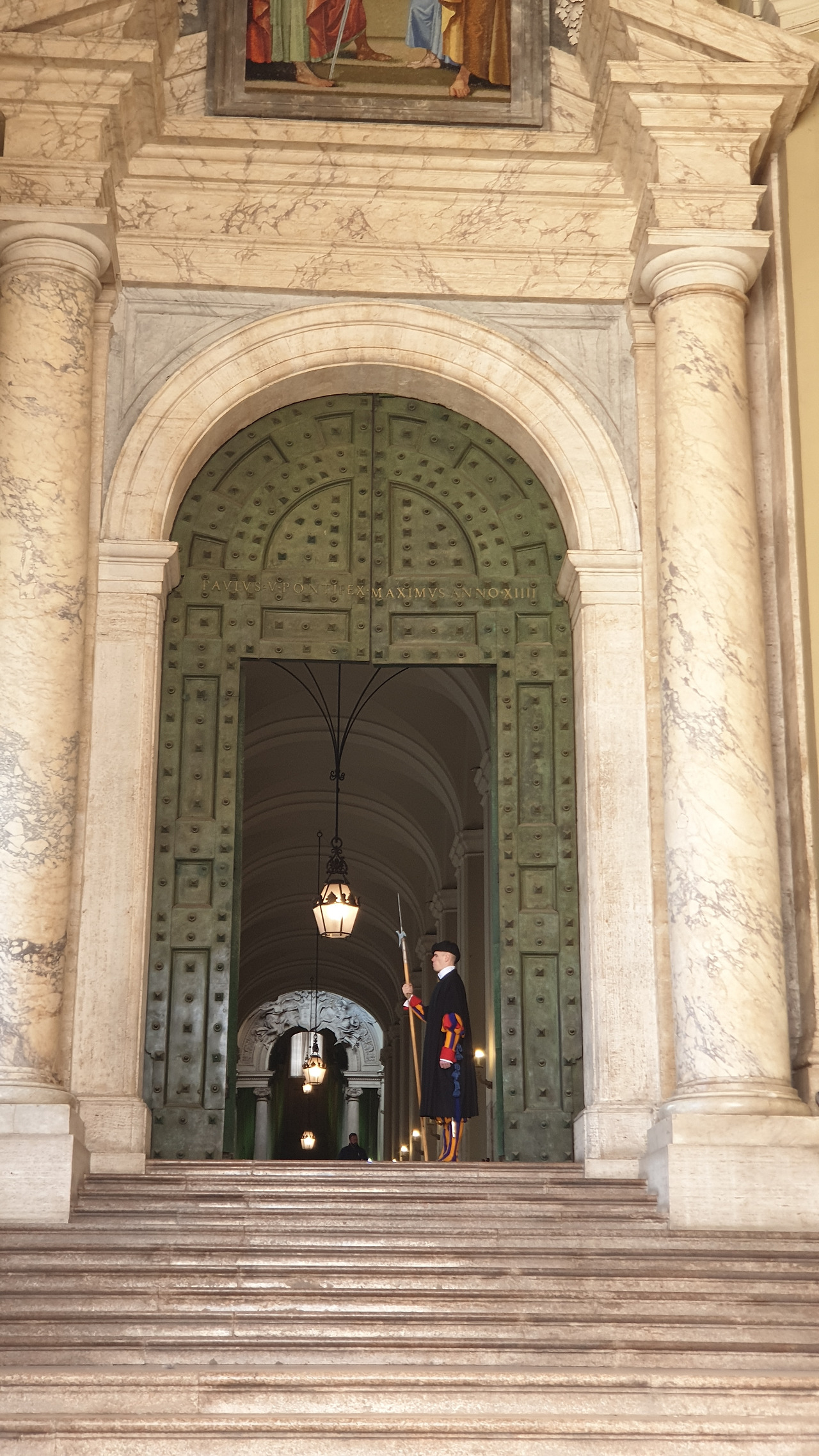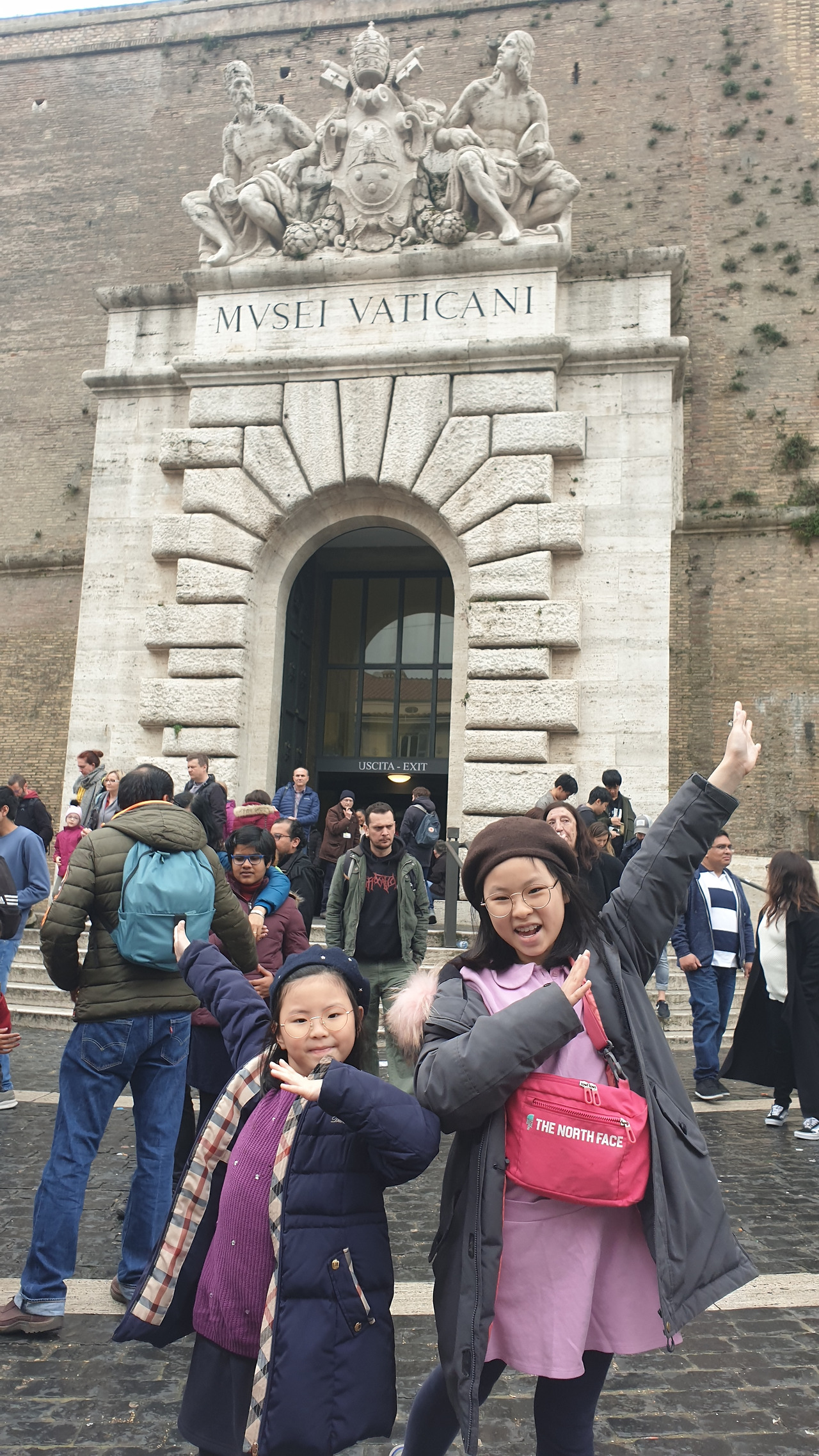 산 피에트로 대성당을 나오며 운 좋게 스위스 근위병을 만나서 아이들은 포즈를 취하며 사진을 찍었다. 바티칸의 스위스 근위대는 가톨릭 신자이며 대학을 졸업하고 3개 국어가 능통, 180센티 이상인 미혼남이어야 한다던데 명성과 자부심에 걸맞게 잘도 생겼다. 아니 근데 왜 이렇게 잘 알고 있는 건데?!