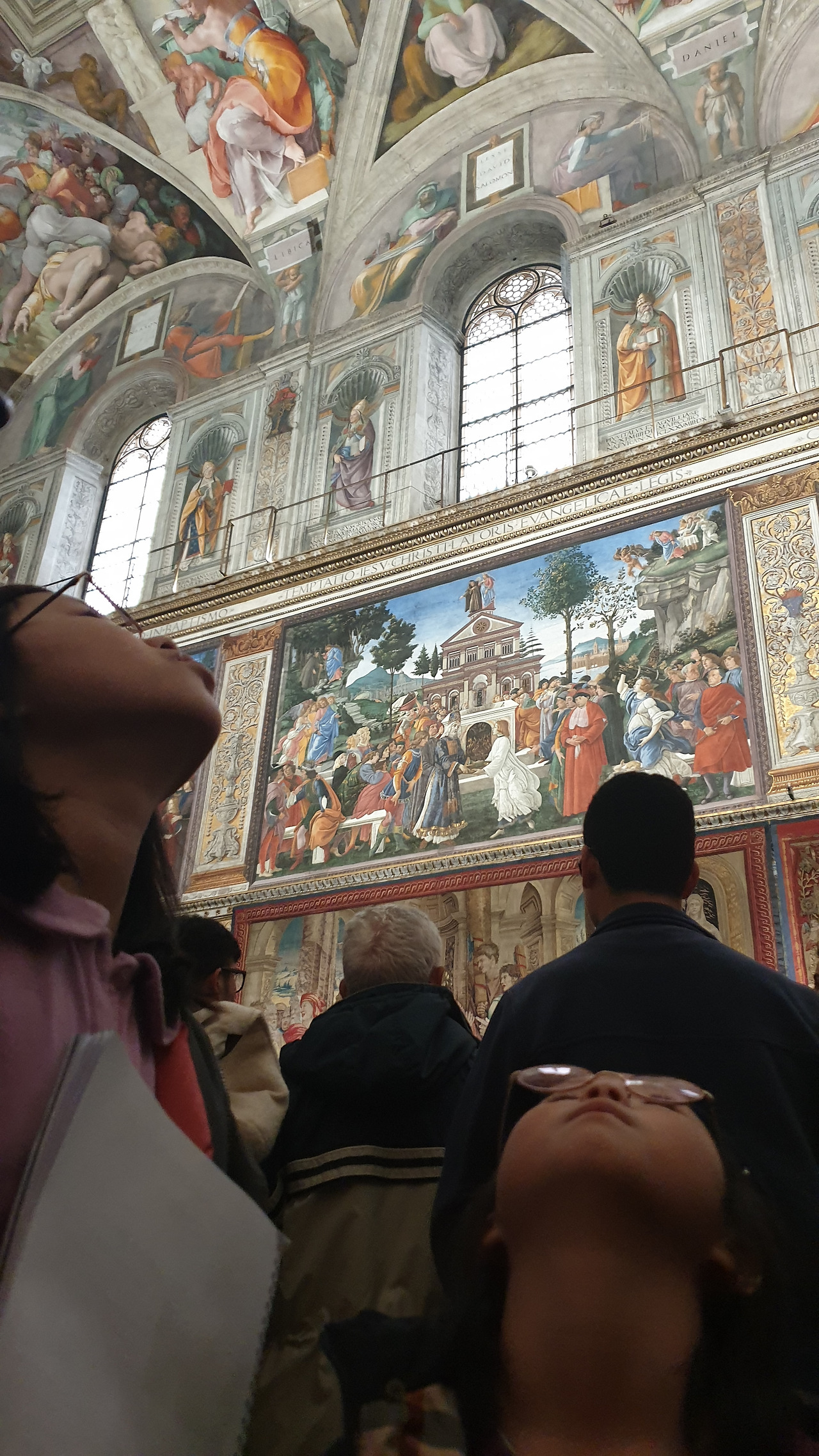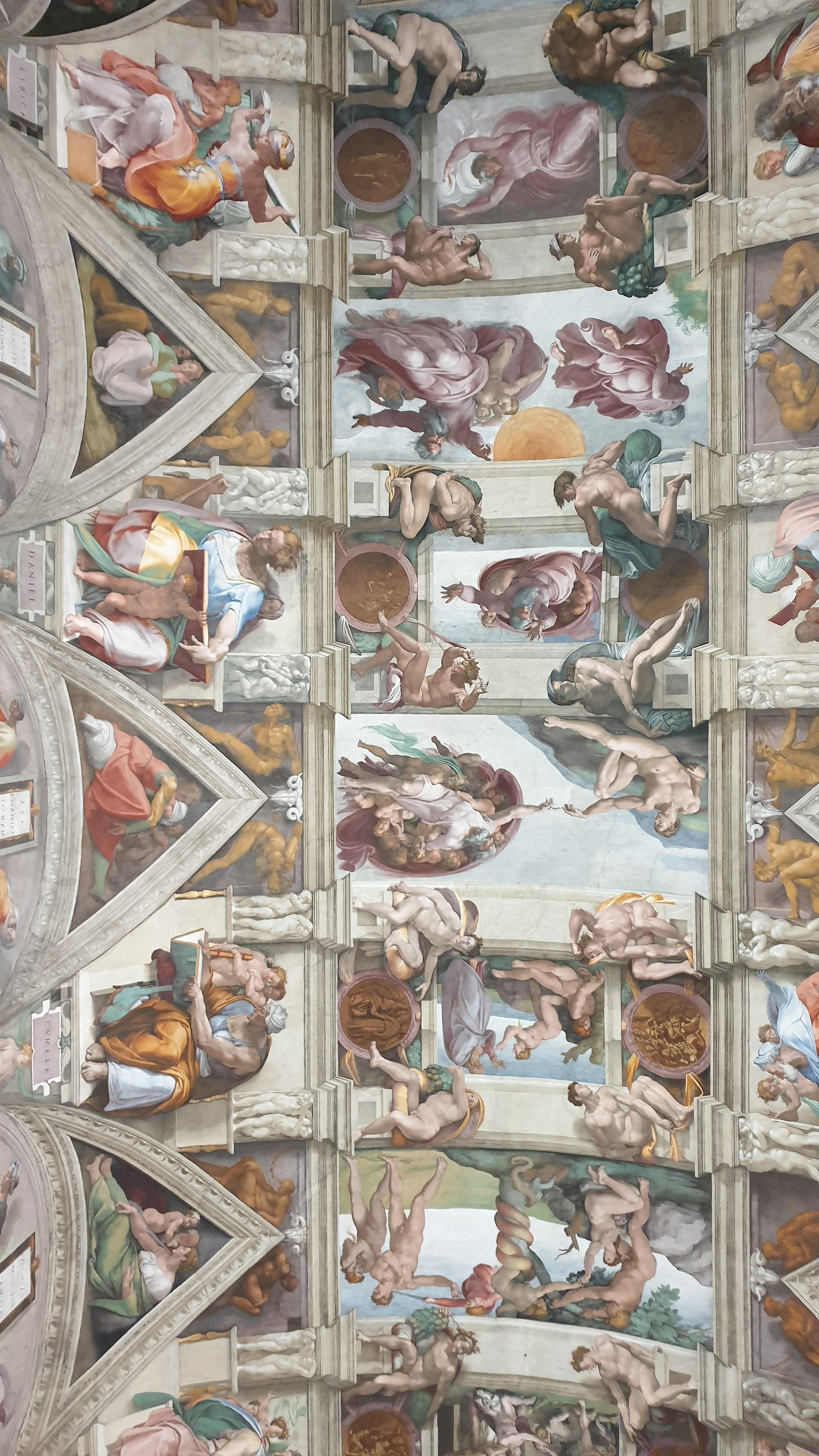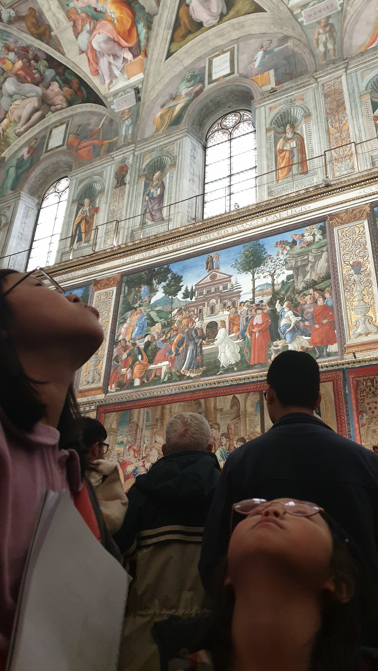 바티칸 박물관의 수많은 작품은 사람들에게 치여서 우리에게는 아무런 감흥이 없었고 단지 우리는 미켈란젤로의 <천지창조>와 <최후의 심판>을 실물로 만나겠다는 일념 하나로 멘털을 붙들어 매었다. 드디어 <천지창조>와 <최후의 심판>을 만나는 순간! (사실 이것도 사람들 인파 속에서 오래 보면 눈치가 보여 얼마나 조마조마 감상했는지 모른다) 미켈란젤로의 압도적인 규모의 <천지창조>를 목이 꺾어져라 올려다보았다. 미켈란젤로의 천장화를 그린 후유증인 목디스크와 시력저하는 감상한 지 몇 분도 안되어 백번 공감되었고 미켈란젤로의 거대한 작품 규모와 신의 경지에 이르는 천재성에 압도당해 우리는 한동안 말을 잃었다.