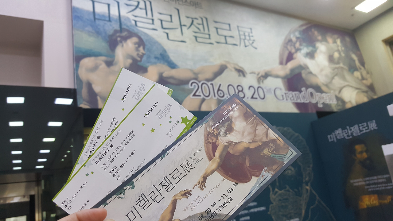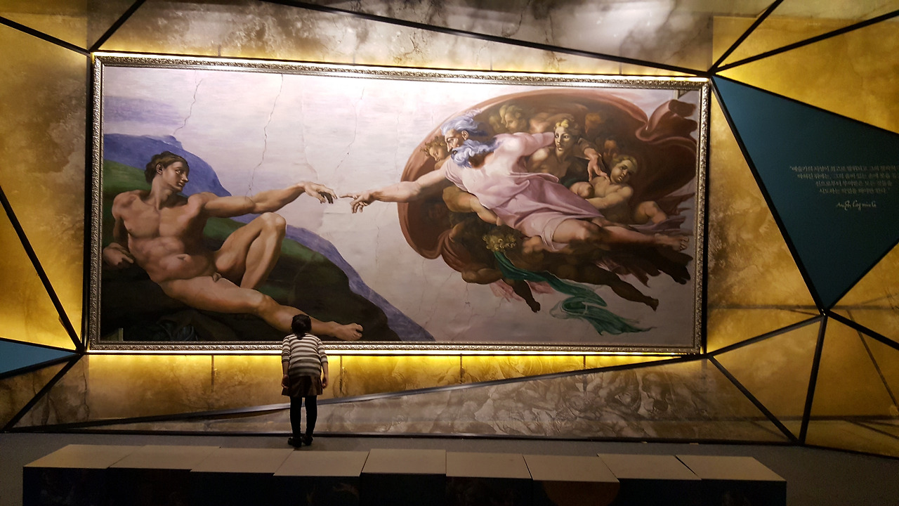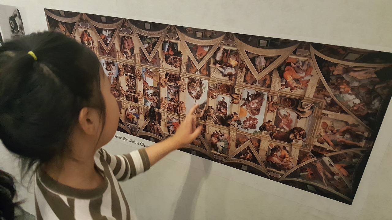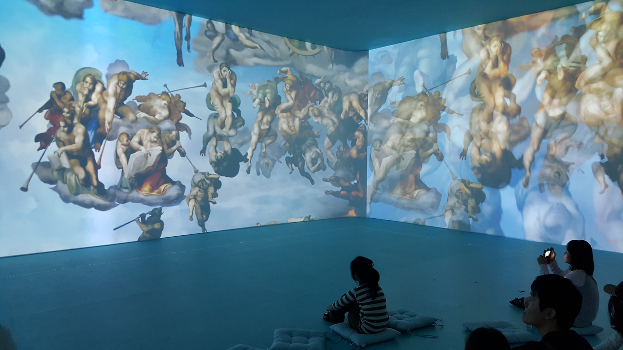 2016년 용산 전쟁기념관에서 만난 미켈란젤로전은 둘째 아이가 어렸기에 첫째 아이와 단둘이 데이트하듯이 즐겁게 감상했었던 걸로 기억이 된다. 미켈란젤로의 천재적인 작품을 스크린으로 만나보고 전시장에 마련된 돗자리에 누워서 <천지창조>와 <최후의 심판> 천장화를 감상하는 즐거운 경험이었다.