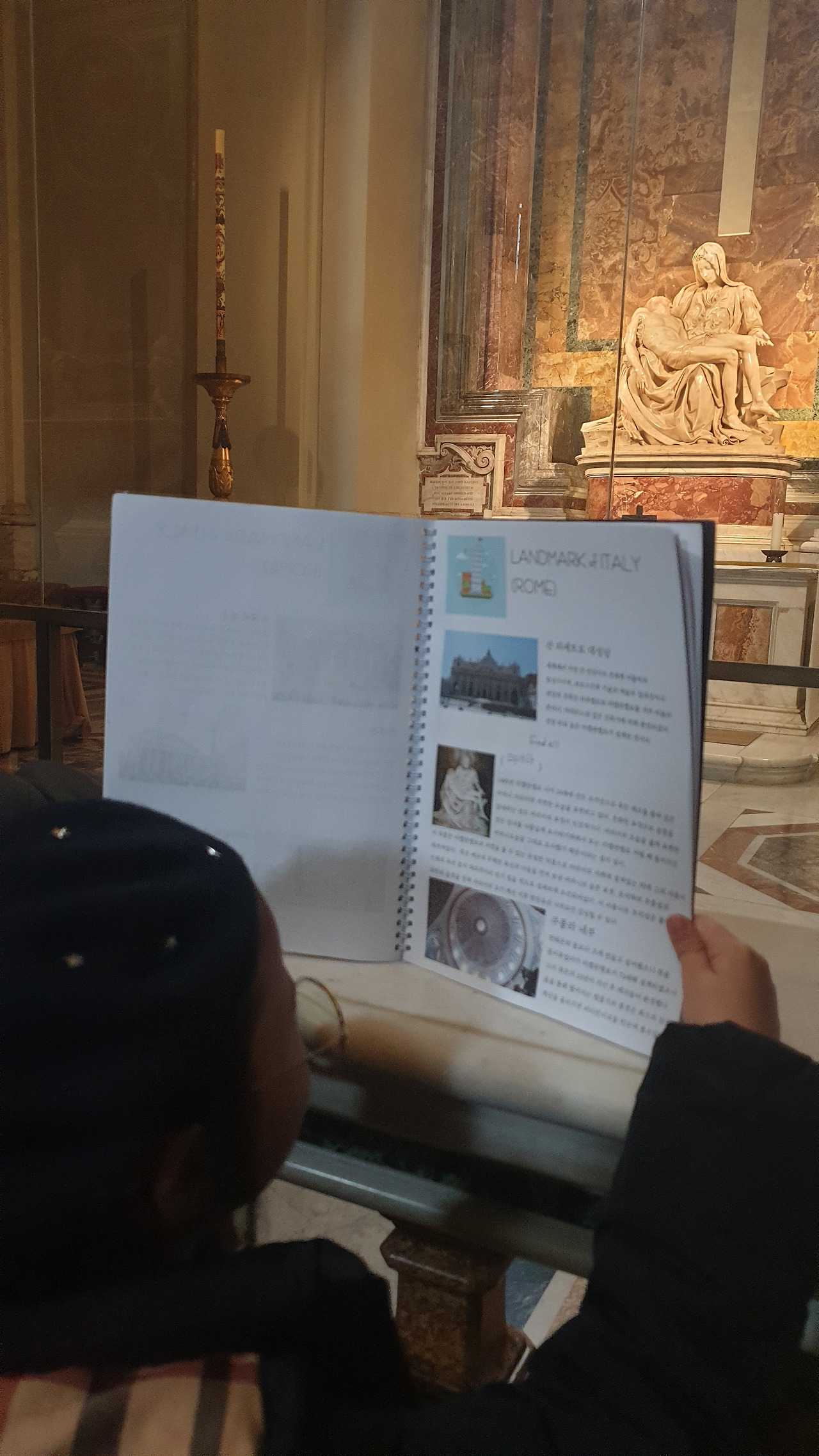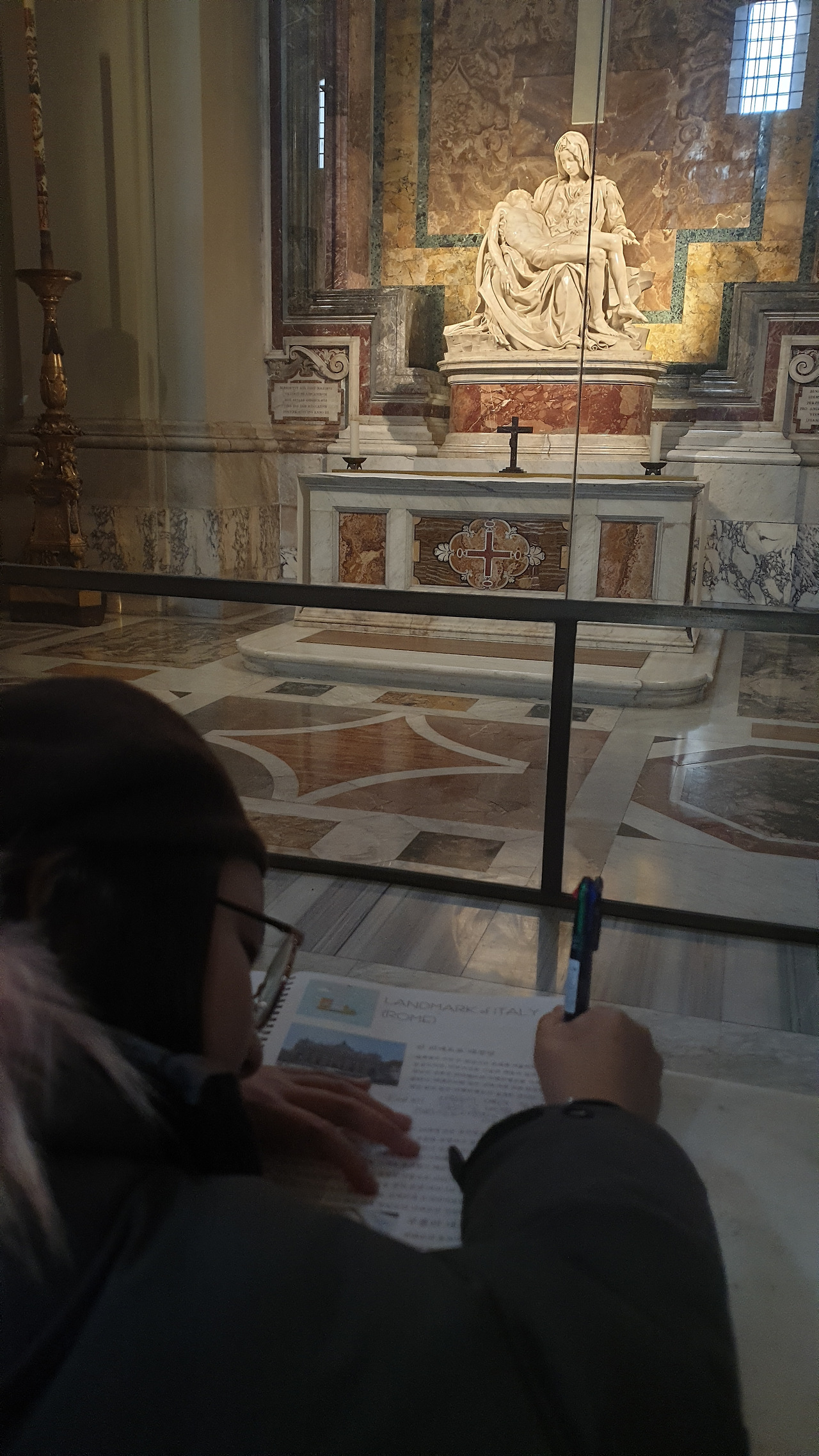 오랜 기다림 끝에 산 피에트로 대성당에 입장하자마자 눈에 띈 것은 다름 아닌 미켈란젤로의 <피에타>였다. 2016년 용산 전쟁기념관의 미켈란젤로전에서 만난 가짜 <피에타>보다 아담한 사이즈의 진짜 <피에타>는 극강의 비주얼의 아우라를 풍기며 단 몇 초 안에 우리를 사로잡았다.