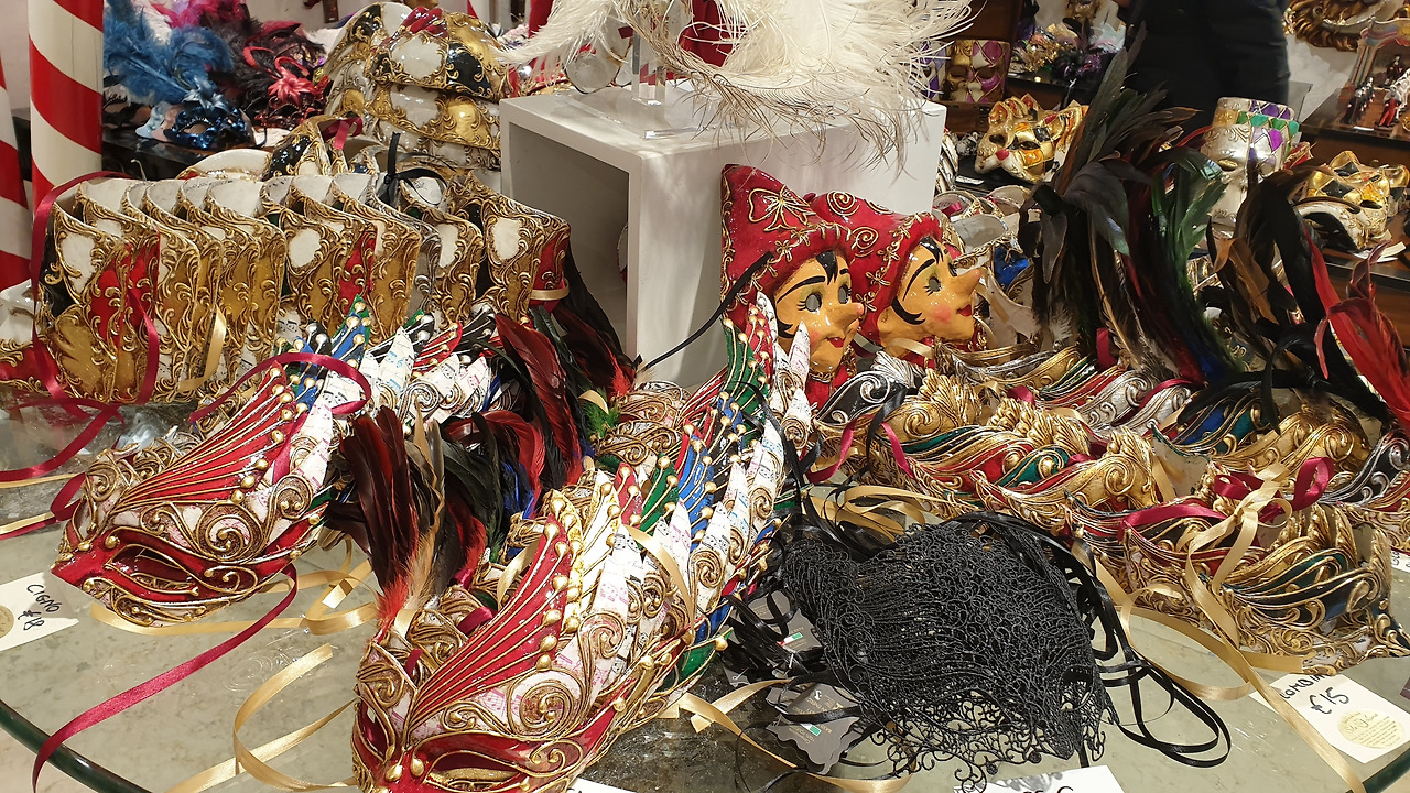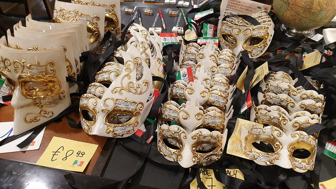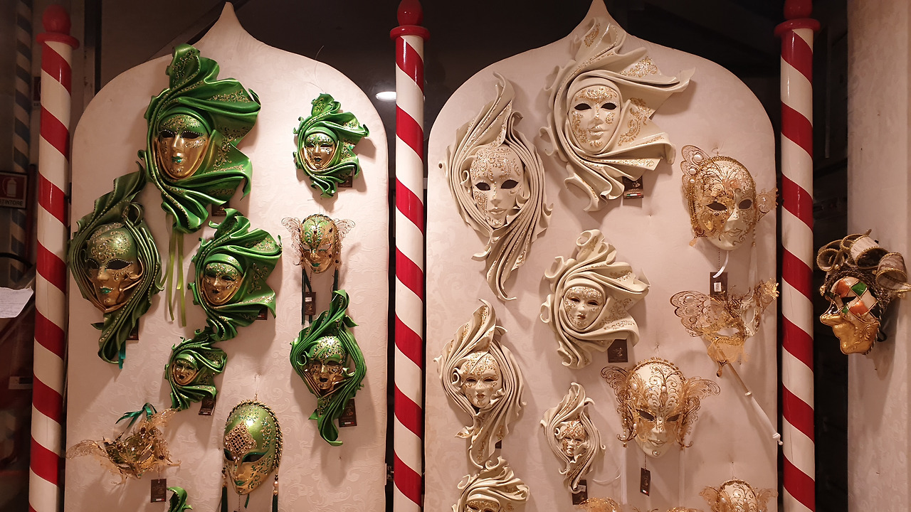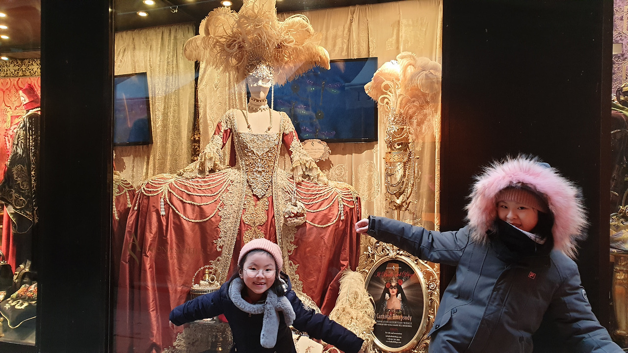 숙소로 돌아오는 길 후미진 골목골목에 만난 상점은 구경거리로 넘쳐나서 한걸음 가다 서다를 반복하게 만들었다. 베네치아의 화려한 축제를 간접적으로 느낄 수 있는 화려한 가면과 개성이 넘치는 의상과 가죽제품이 즐비하였고 구경하던 중에 발견한 비알레티 모카포트 매장을 발견한 엄마 사람의 눈은 휘둥그레진다.