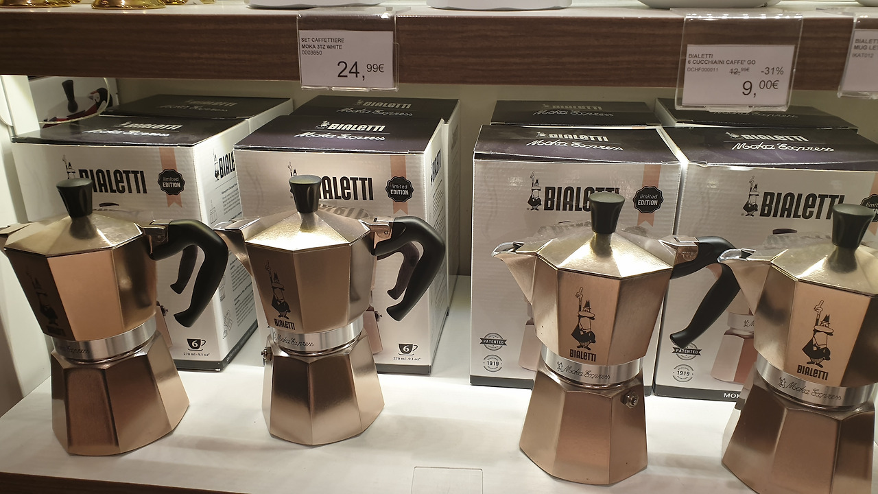짐 지옥은 남편이 합류하면서 어느 정도 해결되었으니 30% 할인하는 모카포트는 무조건 사야겠다. 쇼핑에 취한 엄마 사람에게 피곤을 논하는 아이들의 입은 달콤한 젤라또로 막았으니 본격적으로 구매해본다.