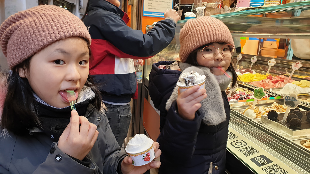 골목 한 블록을 지날 때마다 새로이 맞이하는 광경에 탄성을 자아내었고, 곤돌라를 이끄는 곤돌리에를 본 순간 아이들은 아는 사람인 마냥 손을 흔들어대며 반가워했다. 이런 리액션이 익숙한 듯 곤도리에는 시크하게 노를 저어 우리를 비켜났고 이 모든 순간이 꿈과 같이 로맨틱했다.