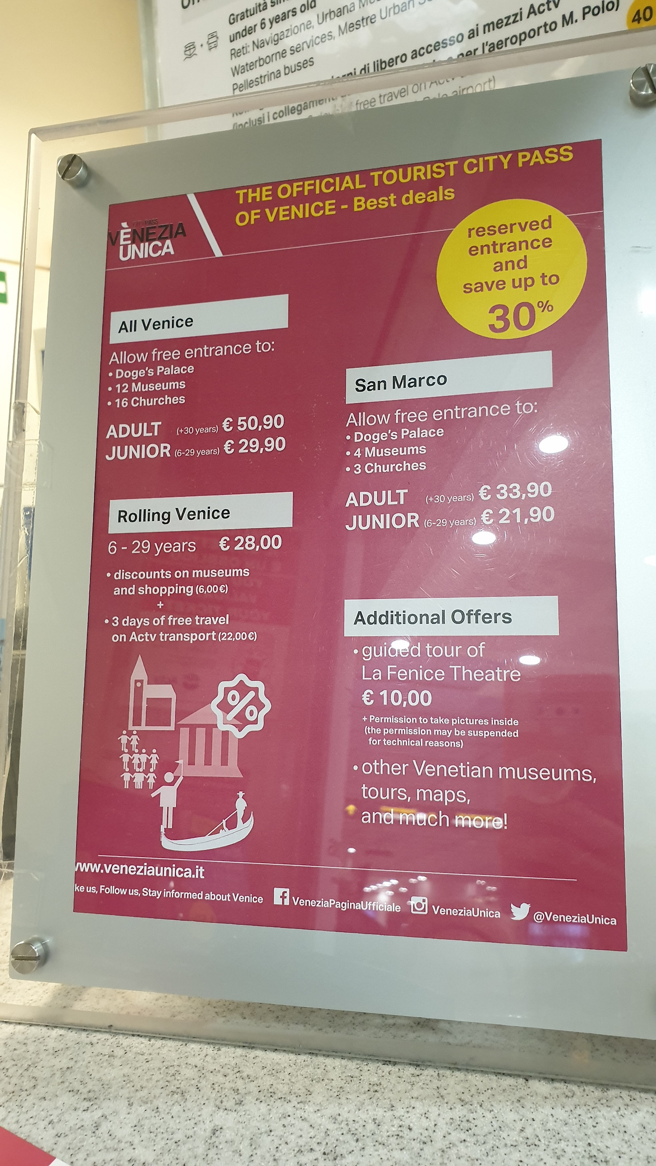 롤링베니스 교통권 (공항-산타루치아역 €6x4=€24 / 어린이 €56 /어른 €60=€140)