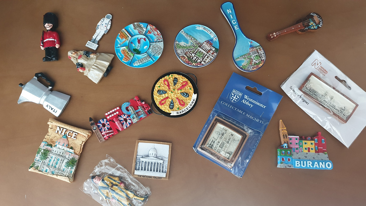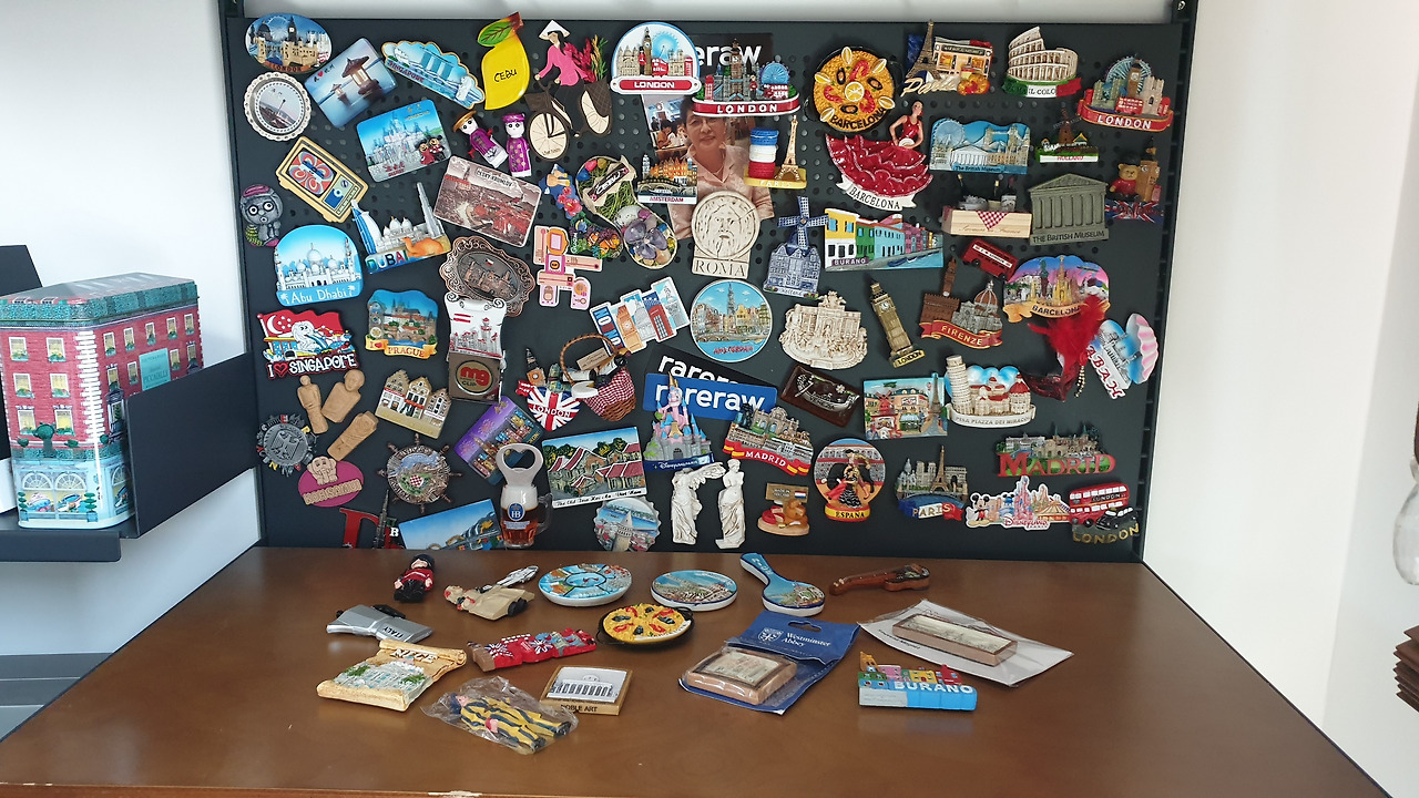 나라별 마그넷 & 박물관 기념엽서 그리고 에코백 한국에 돌아와서 타공판보드에 마그넷을 붙였더니 마음이 든든하다. 해외여행을 하면 꼭 사는 것이 그 나라의 마그넷인데 이번 여행에 있어서는 10개의 도시에 관련된 마그넷뿐만 아니라 박물관, 미술관, 서점 등의 기념 마그넷 또는 에코백부터 기념엽서까지 구매하였고 지인 선물용 및 나의 취미 소장용으로 100개 정도 구매한 것 같다. 나에게 있어 마그넷은 짐 지옥을 버텨낼 만한 아이템인 것이다. 마그넷을 물끄러미 바라보고 있으면 이 마그넷을 어느 골목에서 샀는지 기억이 새록새록 떠오르고 아련한 추억이 몽글몽글 마음을 간지럽힌다.