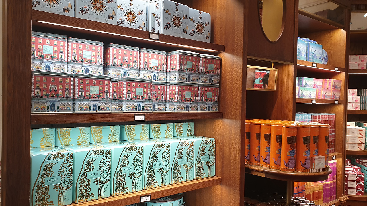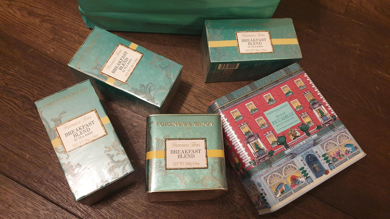 영국 포트넘 앤 메이슨 영국은 'Afternoon tea time'이 있을 정도로 차를 사랑하고 '홍차의 나라'라고 해도 과언이 아니다. 피카딜리서커스 주변에 있는 포트넘 앤 메이슨은 영국의 대표적인 차 브랜드로 지인들에게 선물하기 좋은 차뿐만 아니라 다양한 티팟 제품들이 화려하게 전시되어있었다. 차들은 향을 맡아보고 선택할 수 있어서 그중에서 가장 개인적인 취향이었던 BREKFAST BLEND로 선택하였다. 포트넘 앤 메이슨 건물 모형의 오르골 소리가 나는 틴케이스 안에는 진한 향을 자랑하는 쿠키가 있었는데 짐 무게를 핑계 삼아 우리들의 뱃속으로 직행시켰다.