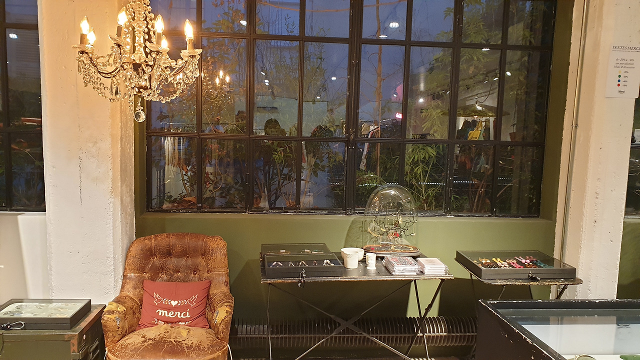 메르시 매장 안에 있는 북카페 프랑스 마레지구에 위치한 Merci는 한국인들에게 가장 많이 알려진 프랑스의 편집샵으로 홈데코, 문구류, 도서, 주방용품에 이르기까지 다양한 제품군을 한자리에 모아놓아 넋을 놓고 구경한 쇼핑코스 중에 하나이다. 그중에서도 무게가 깃털 같은 메르시 팔찌는 선물용으로 구매하기 좋아서 여러 개를 쟁여놓았고 한국인이 워낙 많이 오는 매장이라 직원이 한국어를 구사하며 팔찌 매는 법을 알려주기도 하고 한국인이 캐셔로 일하고 있어서 맛집을 공유하기도 했었던 참 유쾌한 매장으로 기억된다.