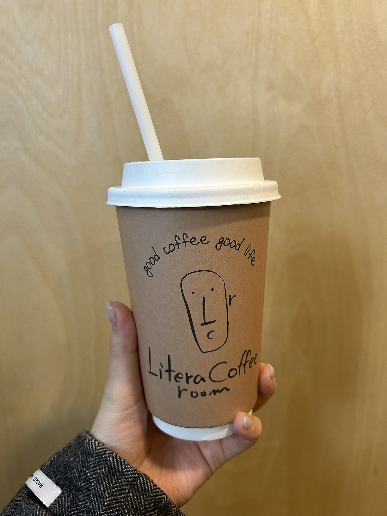 컵에 그려진 그림들도 허투루 그리지는 않았을 것 같아 더 유심히 보았습니다. 역시나 Litera Coffee Room의 약자인 LCR이 코,입,귀에 숨어있었고 다르게 보면 r이 손잡이 역할을 하기에 컵으로 표현되기에도 어색함이 없었습니다. 주문부터 커피를 마시는 순간까지 디테일로 좋은 경험을 제공해 주는 카페입니다.